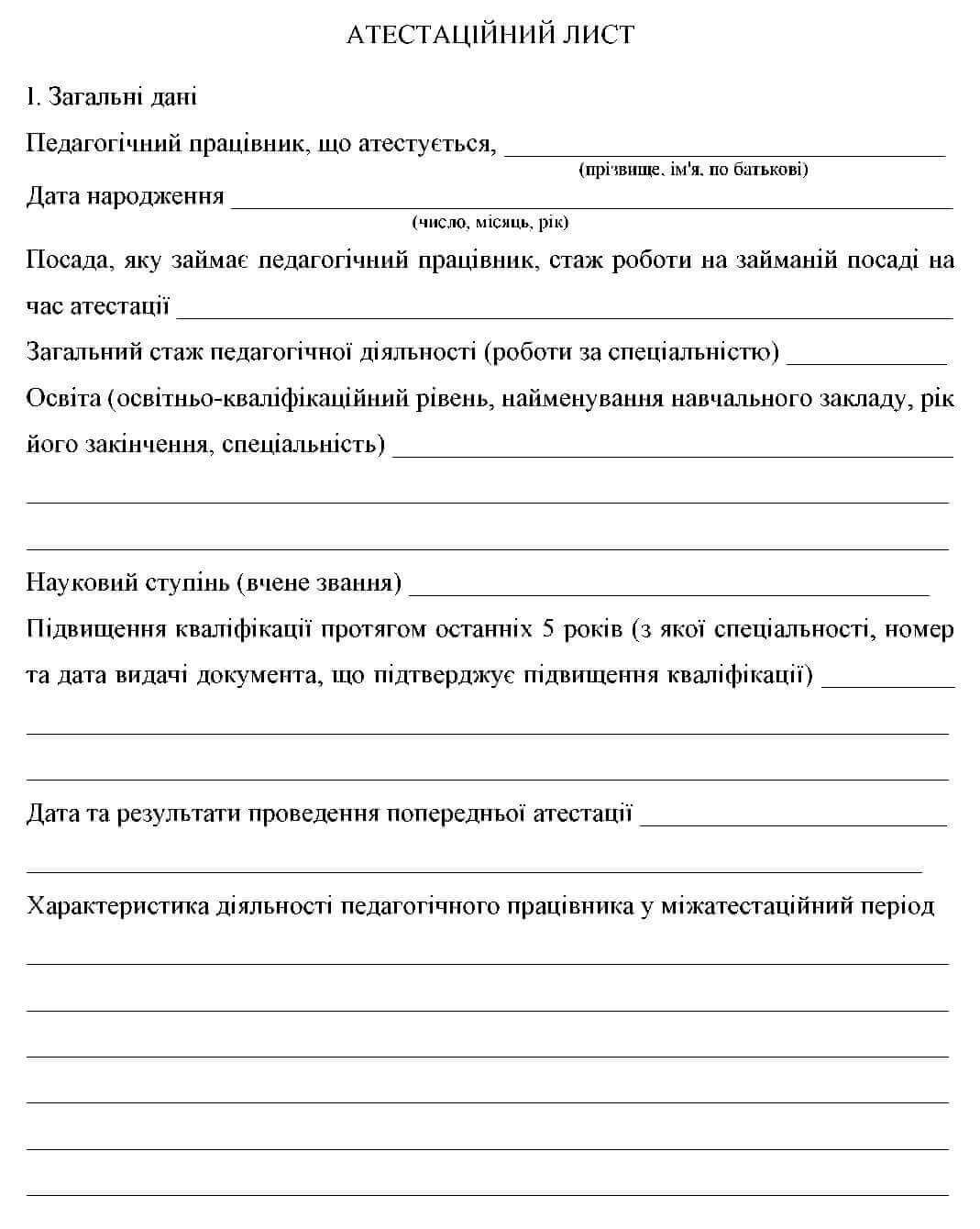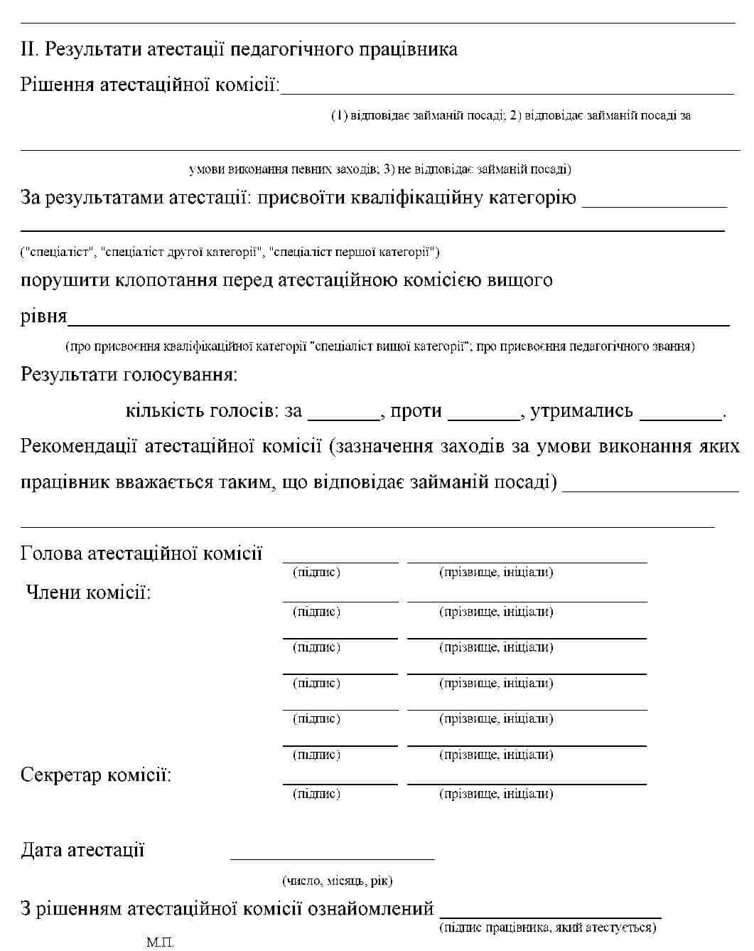3.10 Рішення атестаційної комісії повідомляється педагогічному працівнику одразу після її засідання під підпис. На кожного педагогічного працівника, який атестується, оформлюється атестаційний лист у двох примірниках за формою згідно з додатком, один з яких зберігається в особовій справі педагогічного працівника, а другий не пізніше трьох днів після атестації видається йому під підпис.