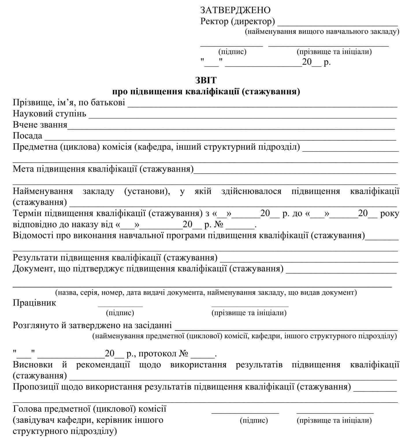 6.7 Працівник, який пройшов підвищення кваліфікації (стажування), складає звіт за формою, наведеною в додатку 4 до цього положення.