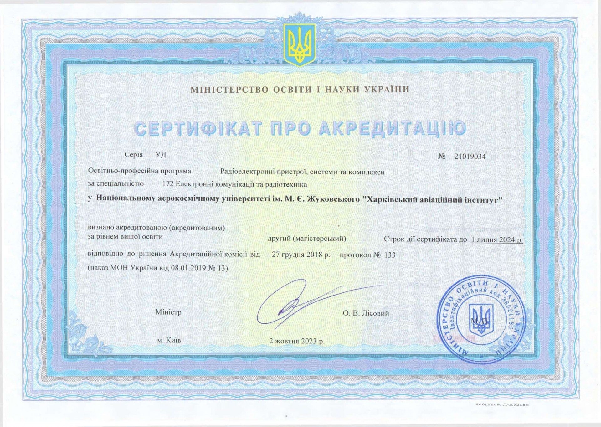 Сертифікат про акредитацію: УД №21019034 від 02 жовтня 2023 року, діє до 01 липня 2026 року