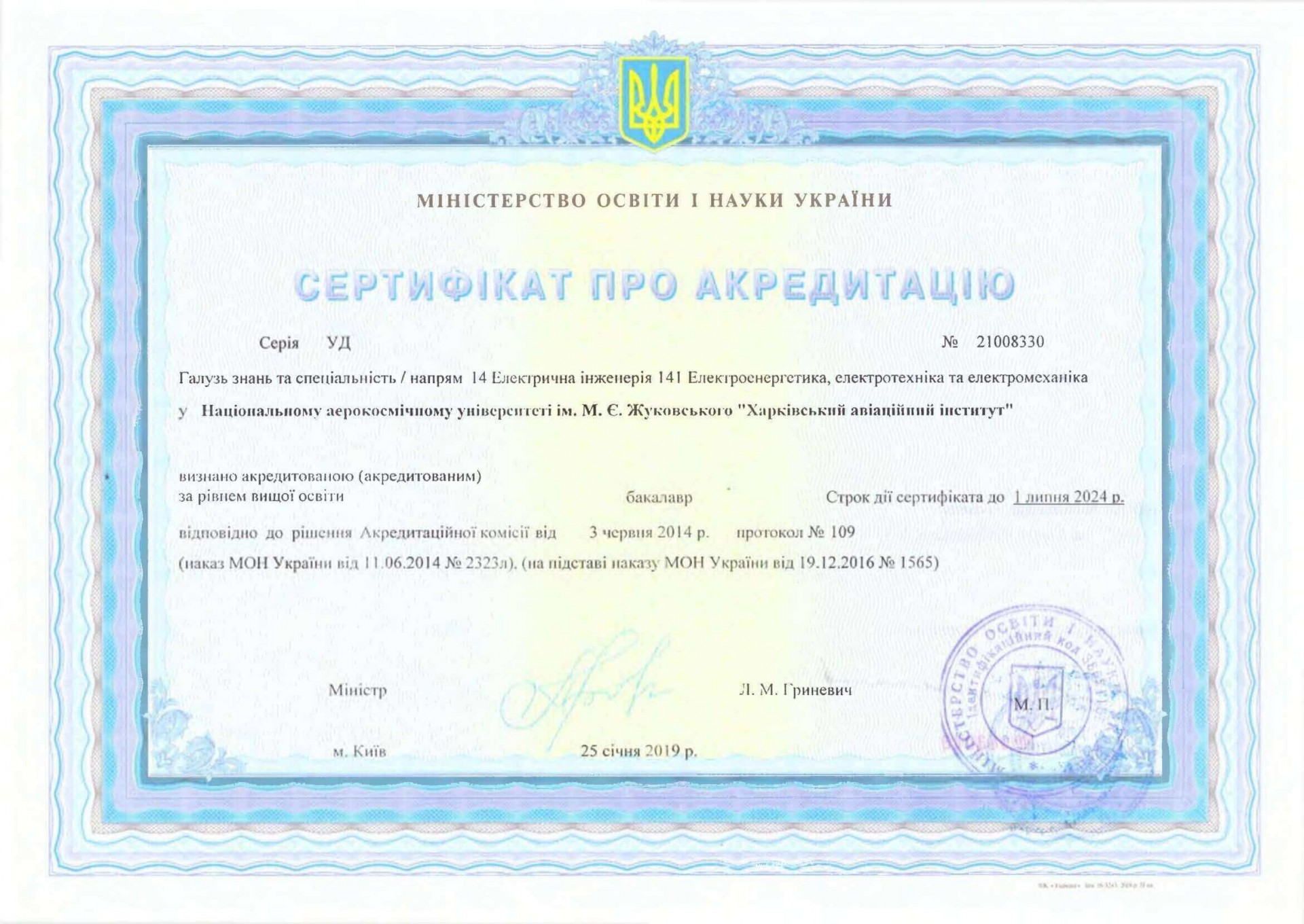 Сертифікат про акредитацію: УД №21008330 від 25 січня 2019 року, дійсний до 01 липня 2026 року
