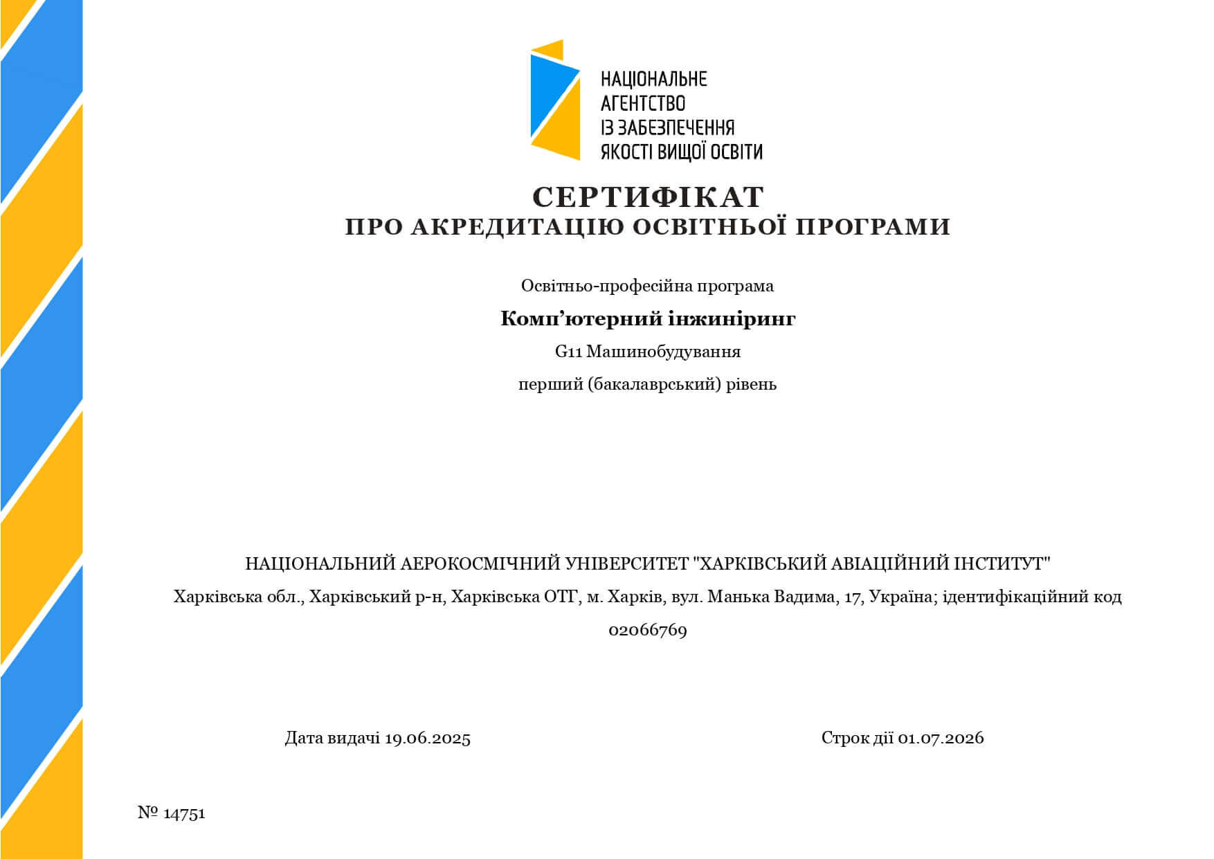 Сертифікат про акредитацію: №14751 виданий 19 червня 2025 року, діє до 01 липня 2026 року.
