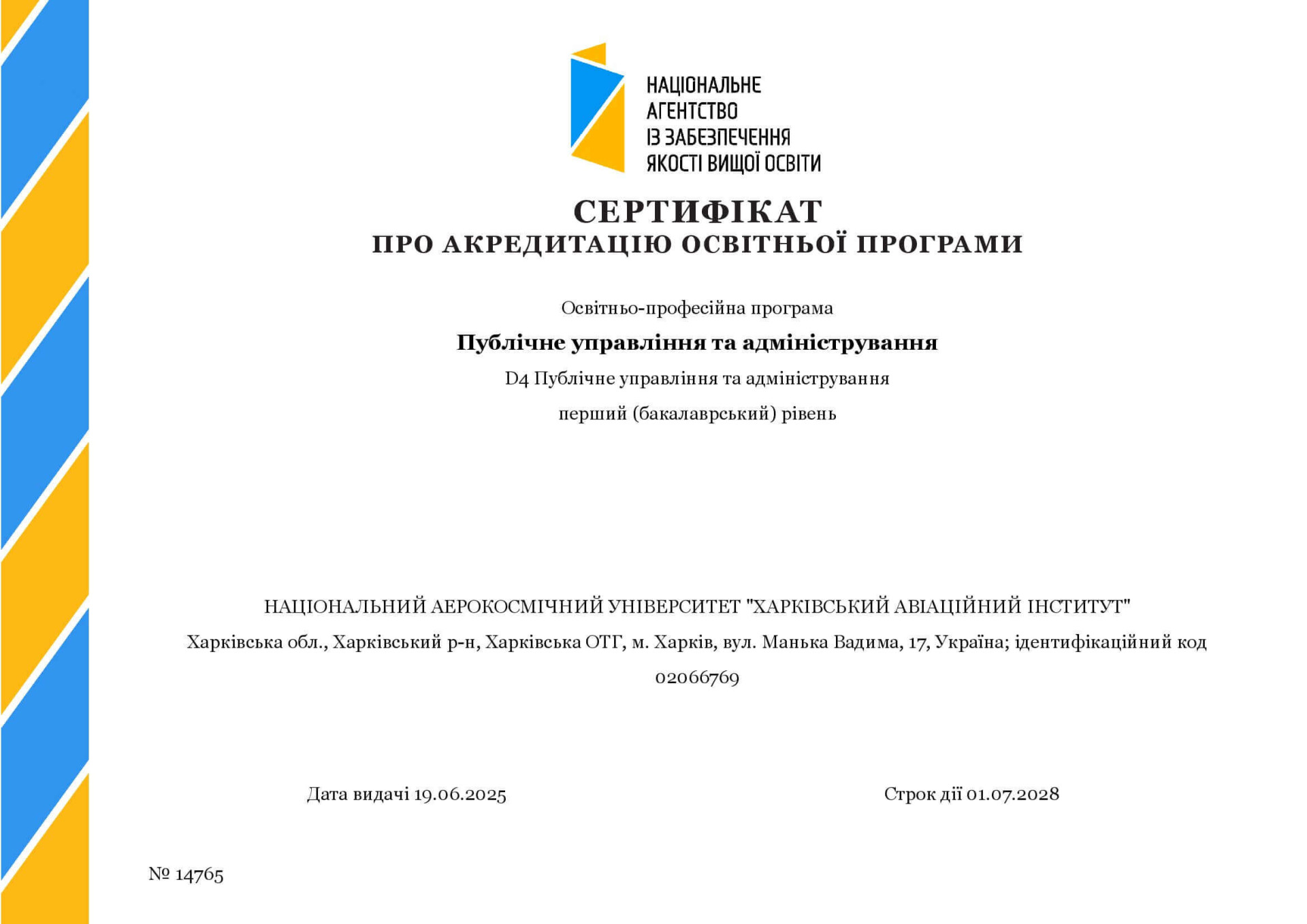 Сертифікат про акредитацію: №14765, виданий 19 червня 2025 року, діє до 01 липня 2028 року.
