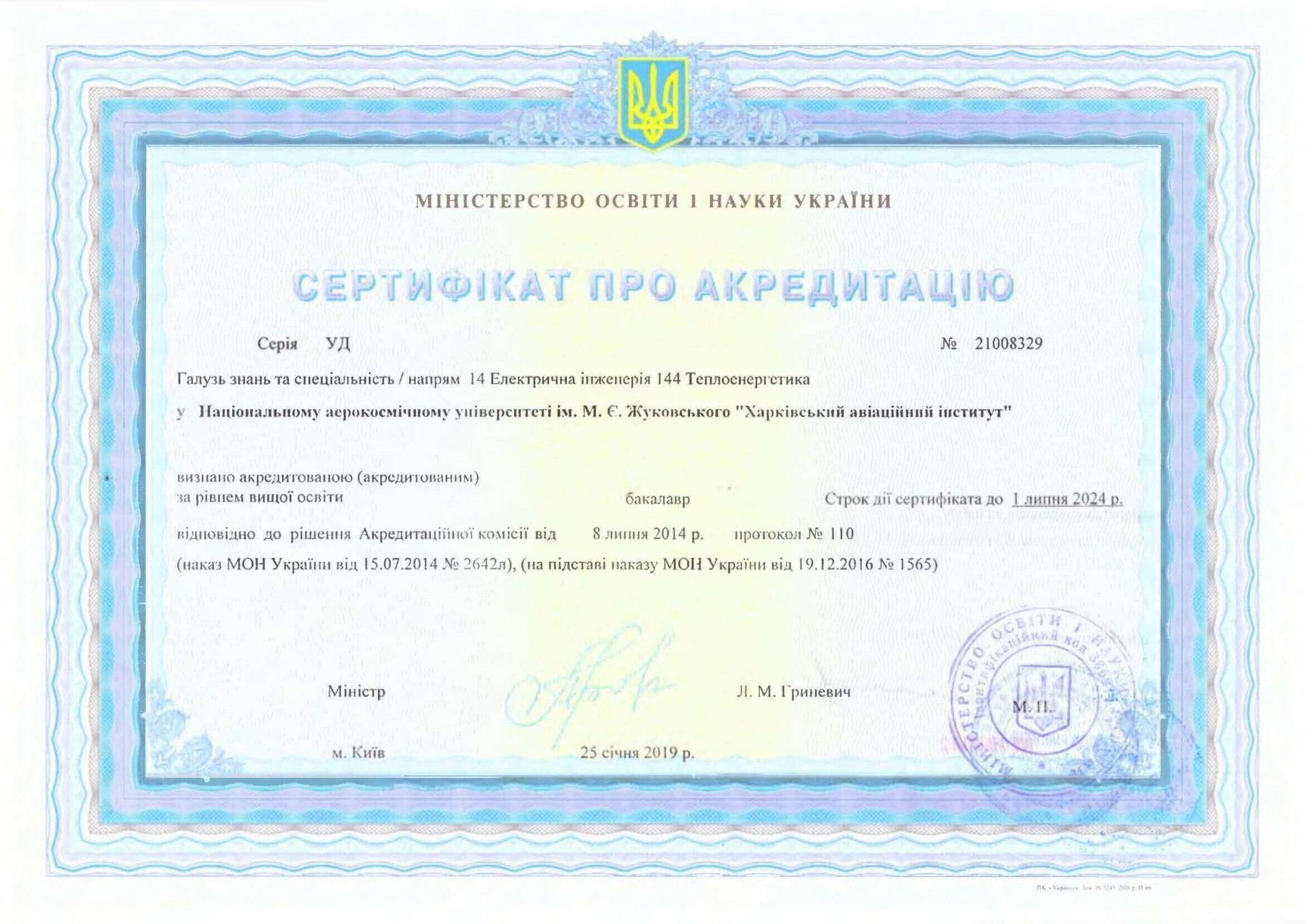 Сертифікат про акредитацію:УД №21008329 від 25 січня 2019 року, дійсний до 01 липня 2026 року