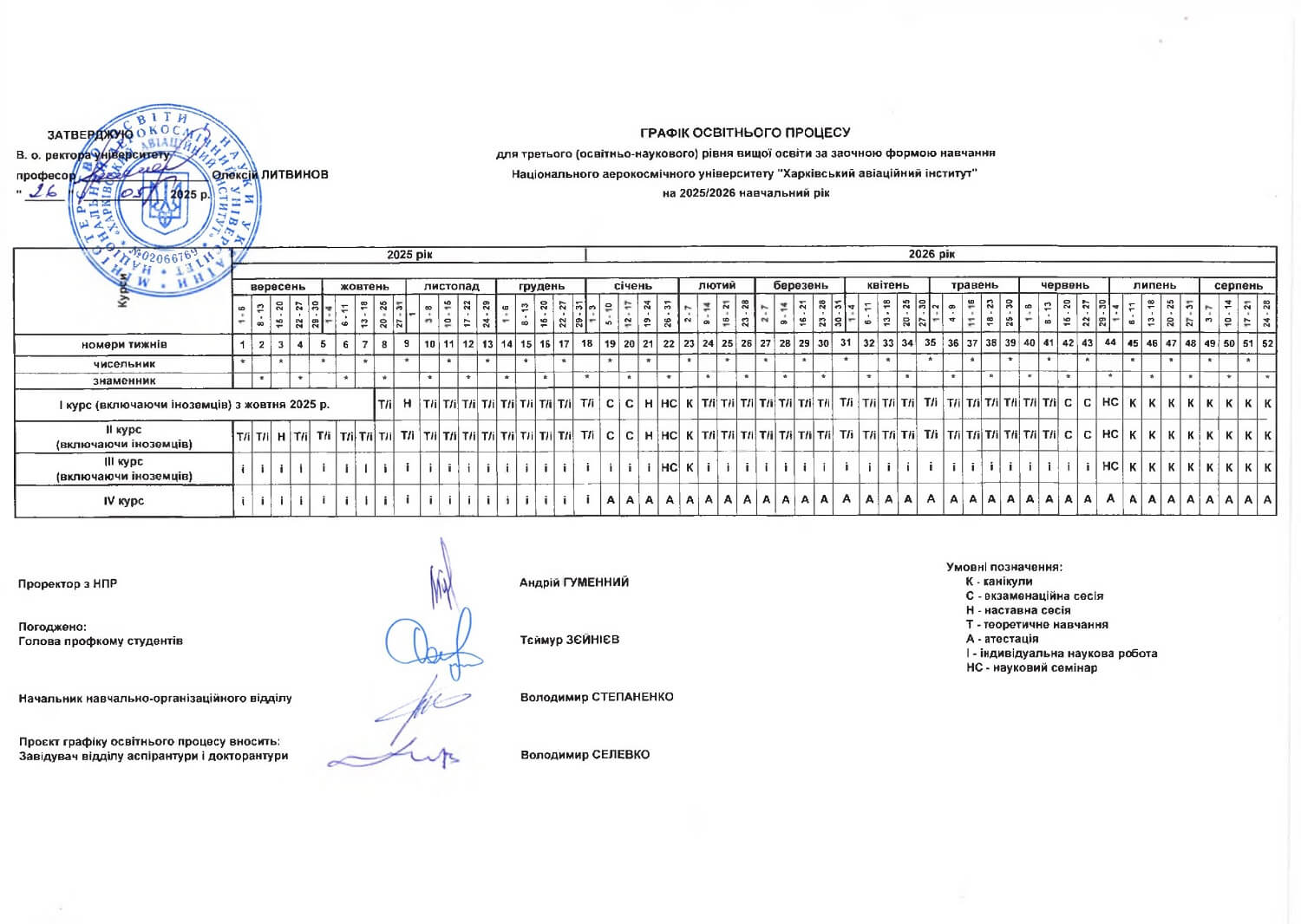Графік освітнього процесу в Національному аерокосмічному університеті