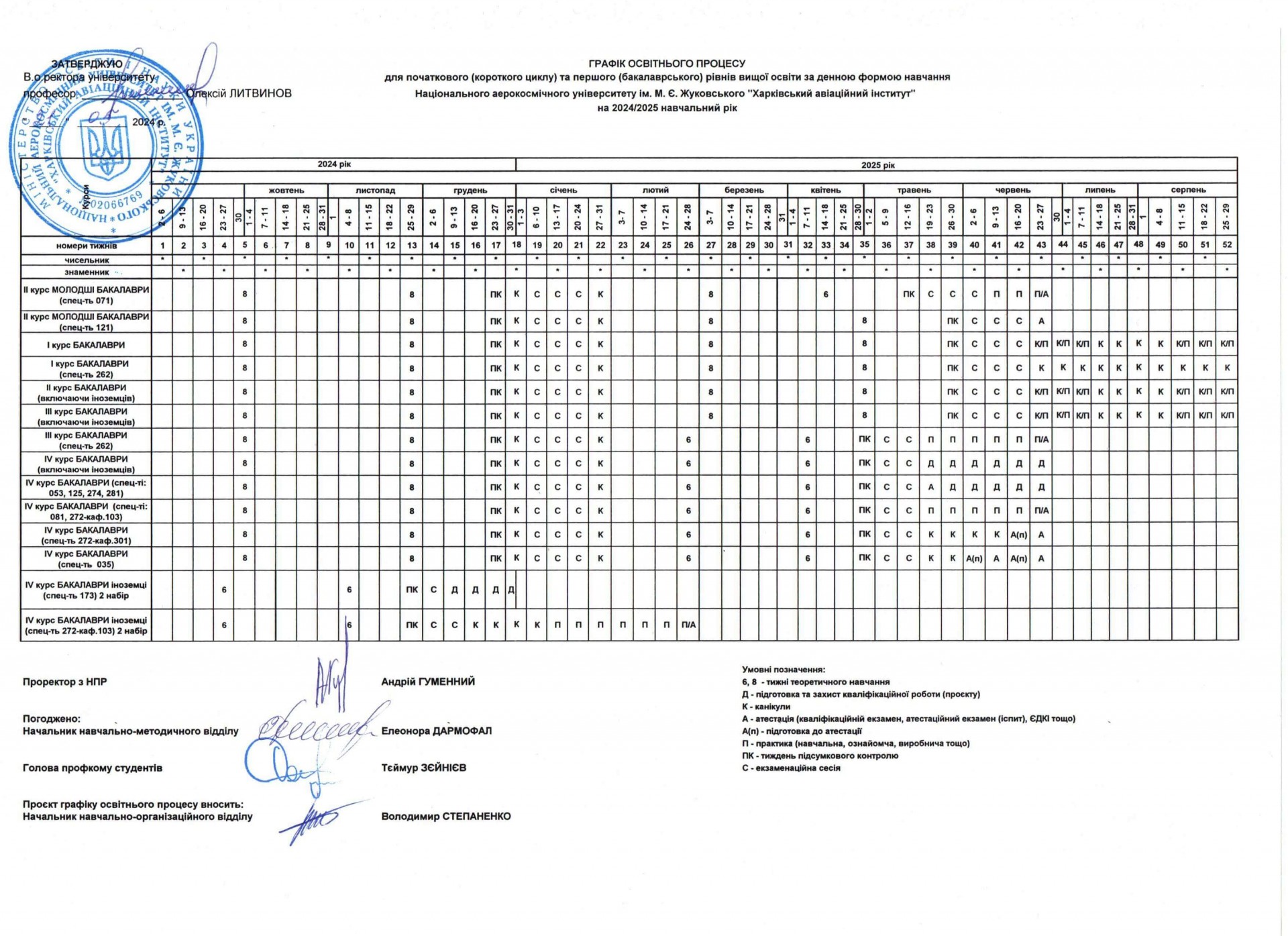 Графік освітнього процесу в Національному аерокосмічному університеті