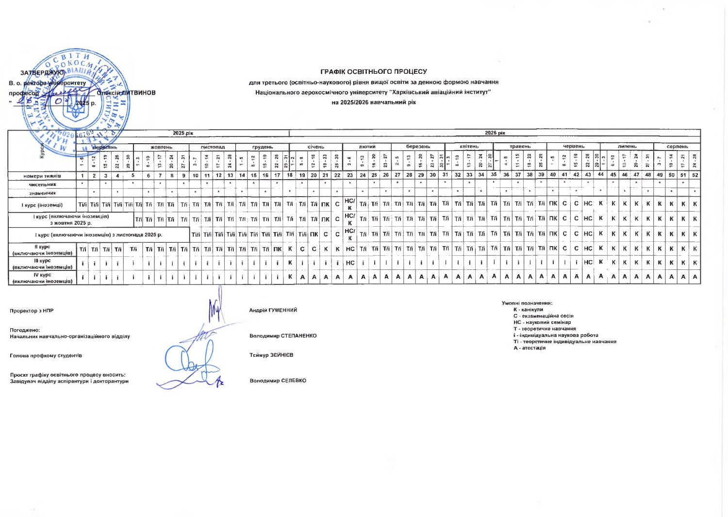 Графік освітнього процесу в Національному аерокосмічному університеті