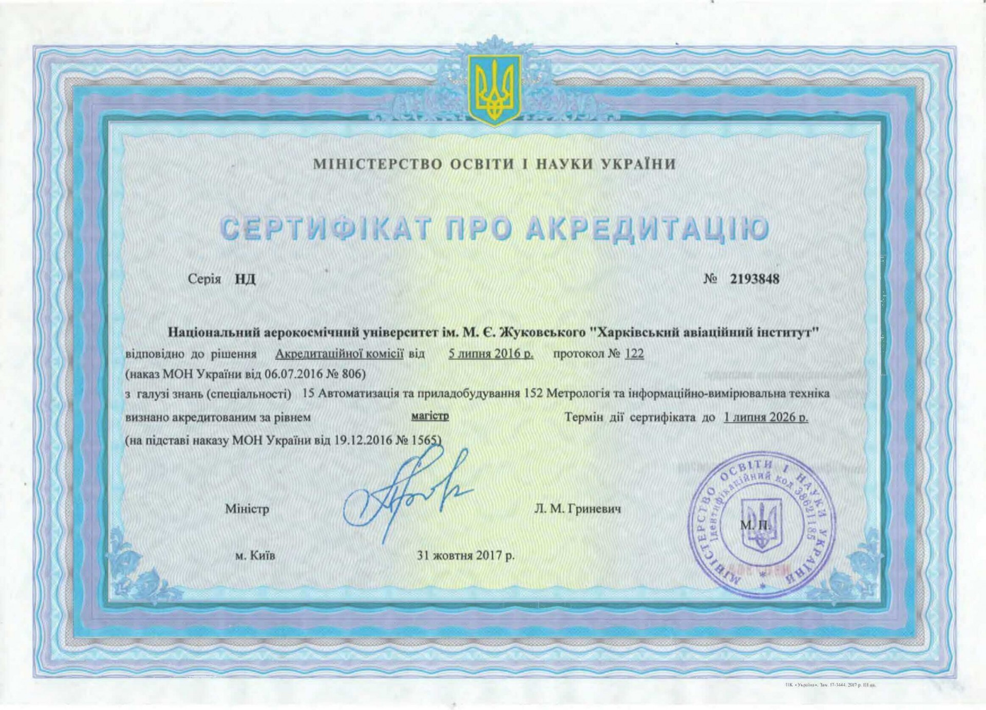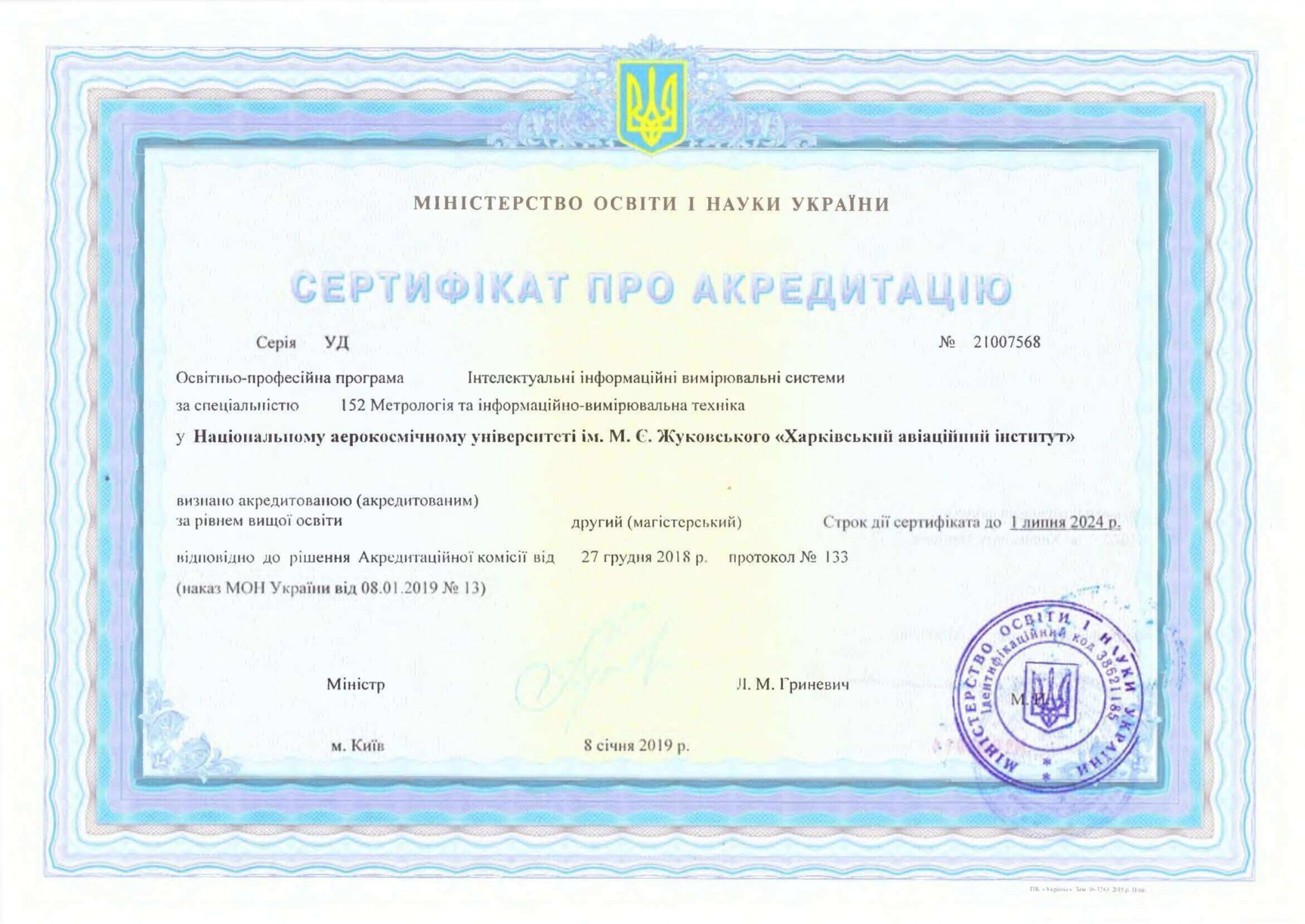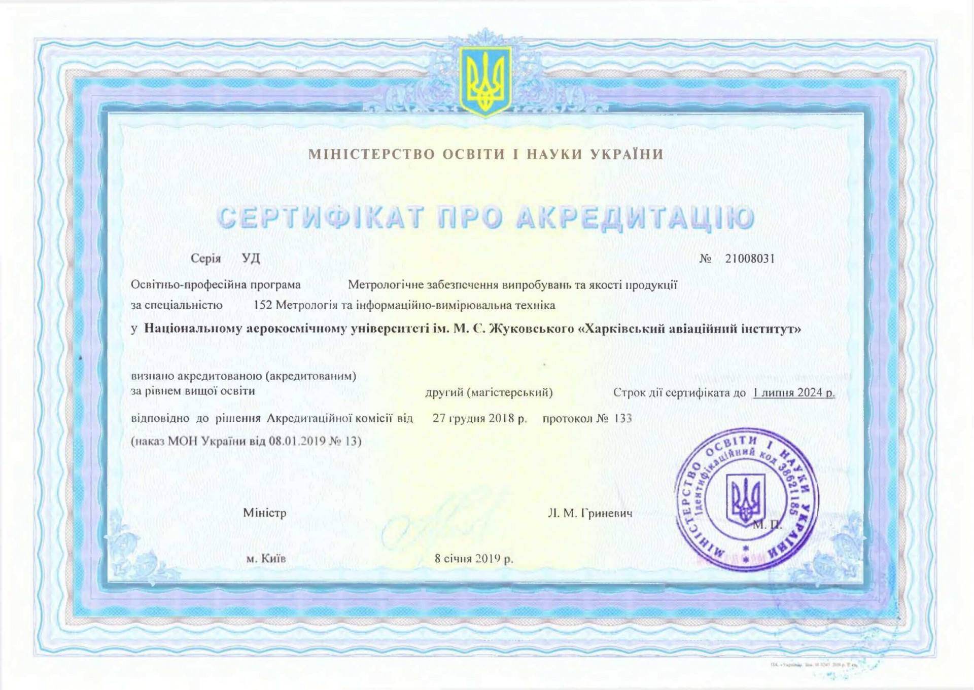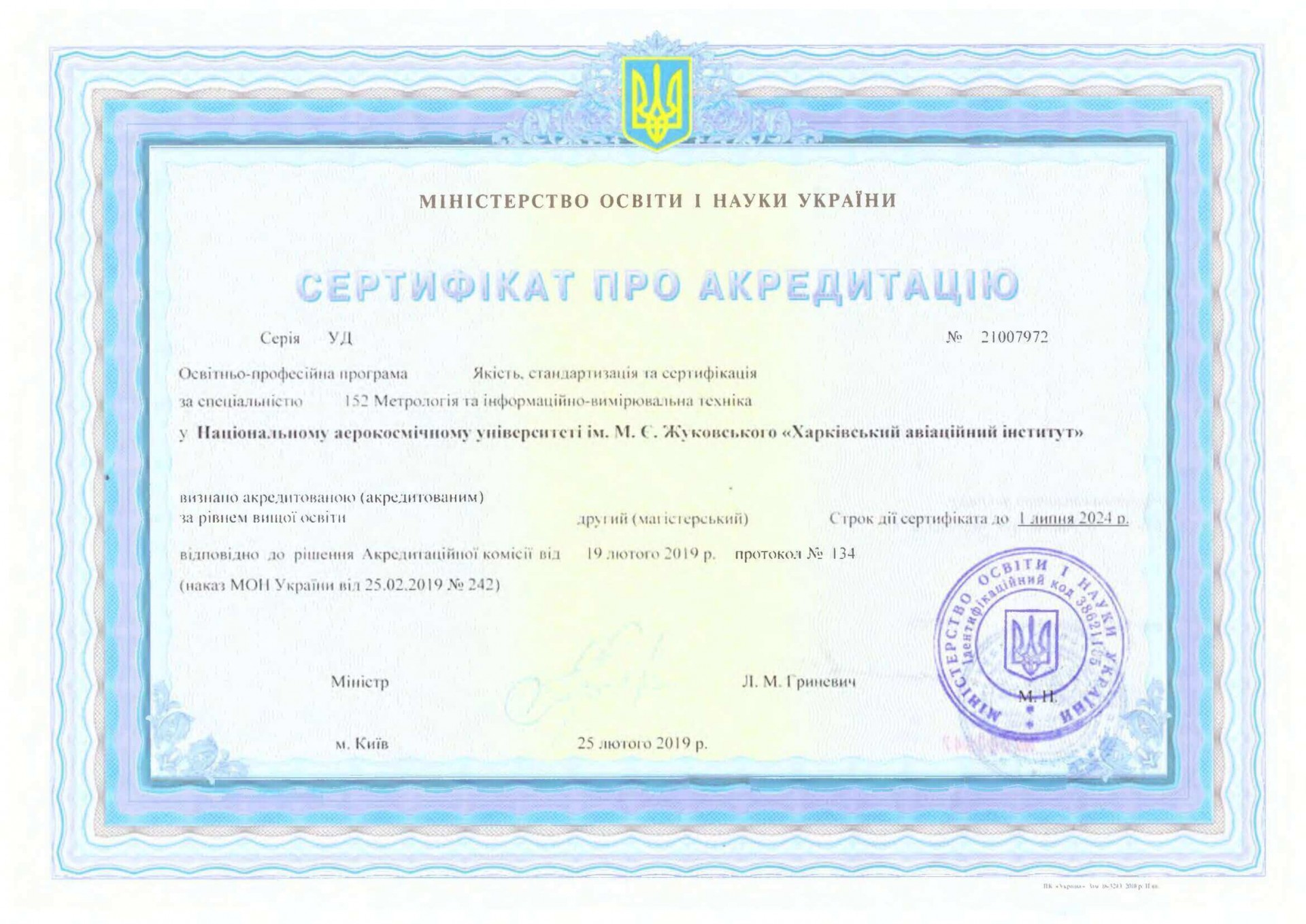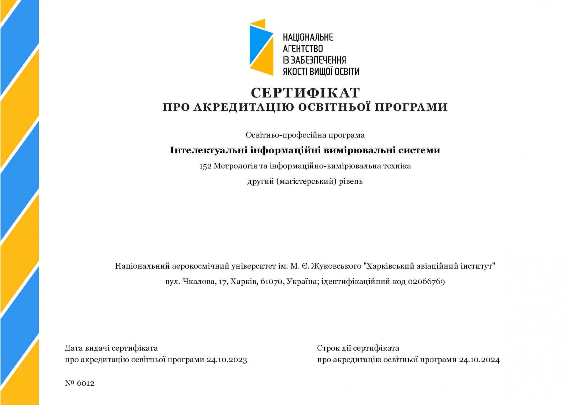 Термін дії сертифікатів про акредитацію спеціальностей/сертифікатів про акредитацію освітніх програм продовжено до 01.06.2026 р. відповідно до пункту 1 Постанови Кабінету Міністрів України «Про особливості акредитації освітніх програм, за якими здійснюють підготовку здобувачі вищої освіти, в умовах воєнного стану» від 16 березня 2022 р. № 295.