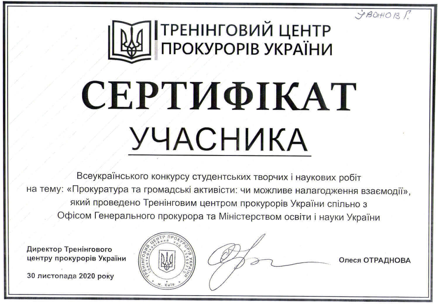 Всеукраїнський конкурс студентських творчих і наукових робіт «Прокуратура та громадські активісти: чи можливе налагодження взаємодії»