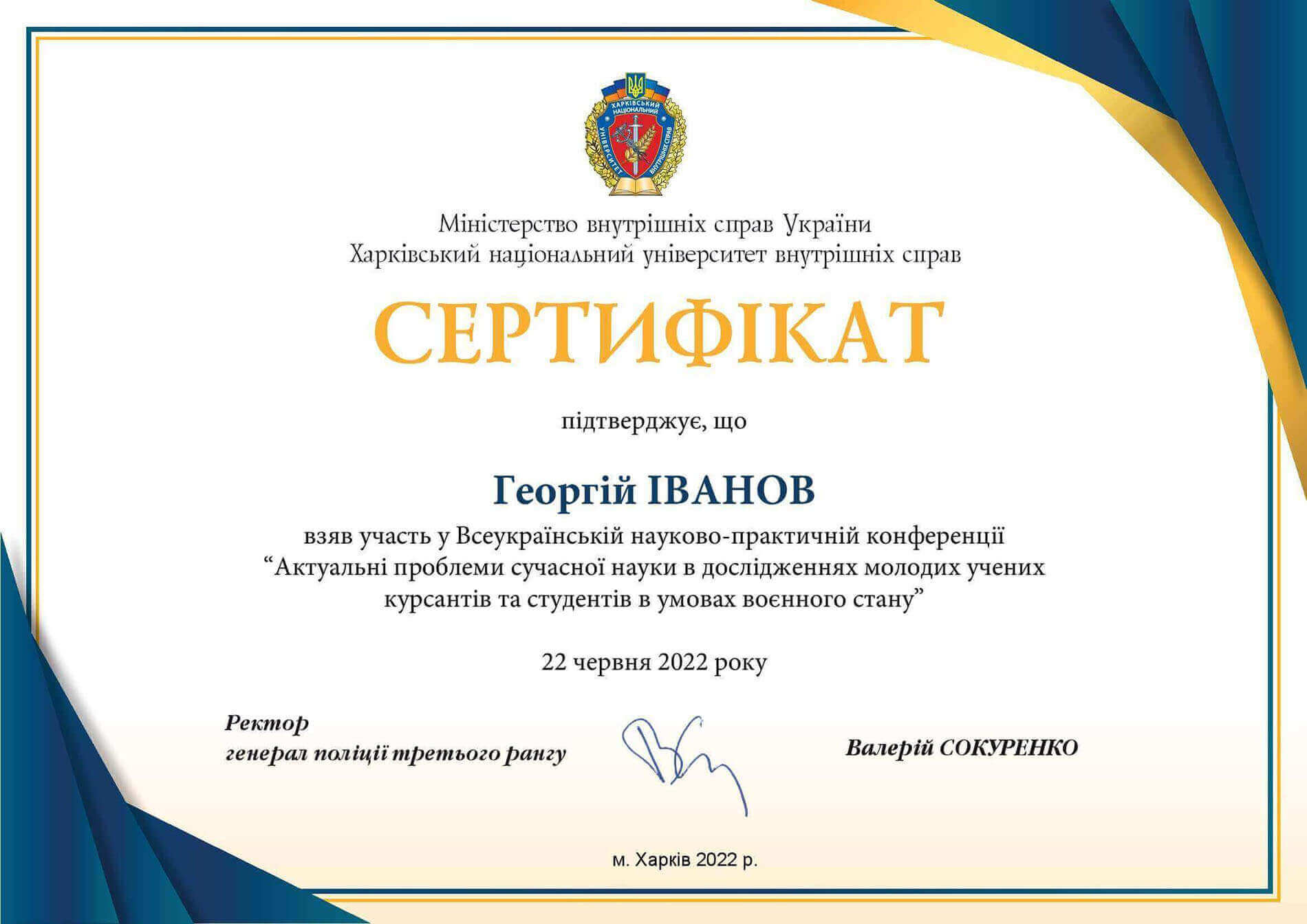 ГоловнаОсвітаПраво (ID 17770)Наукові здобутки кафедри праваНаукові здобутки студентів кафедри праваAll-Ukrainian scientific and practical conference "Actual problems of modern science in the research of young scientists, cadets and students under martial law"