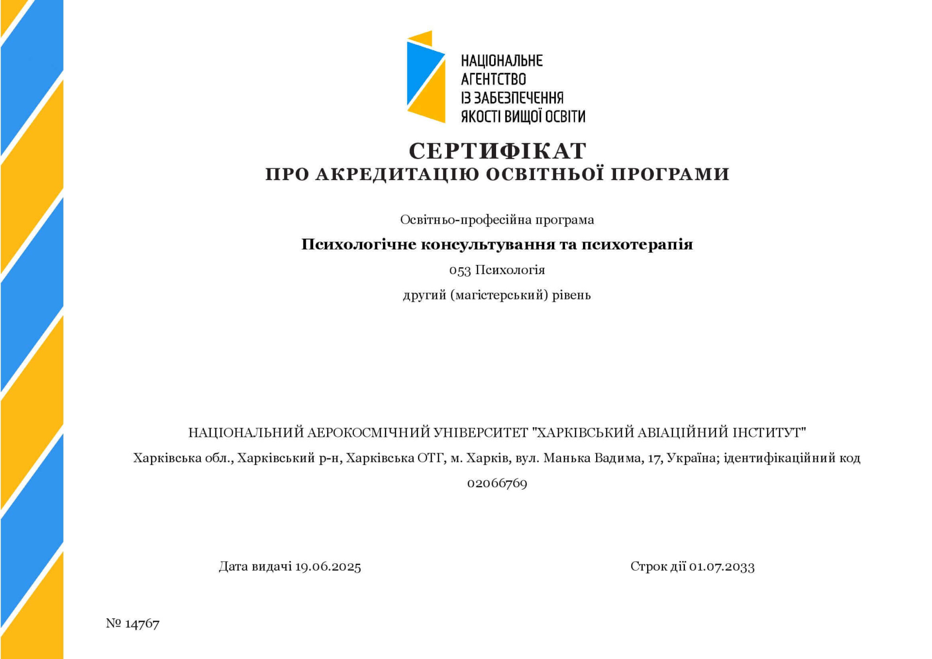 Психологічне консультування та психотерапія (ID 18270) | ХАІ