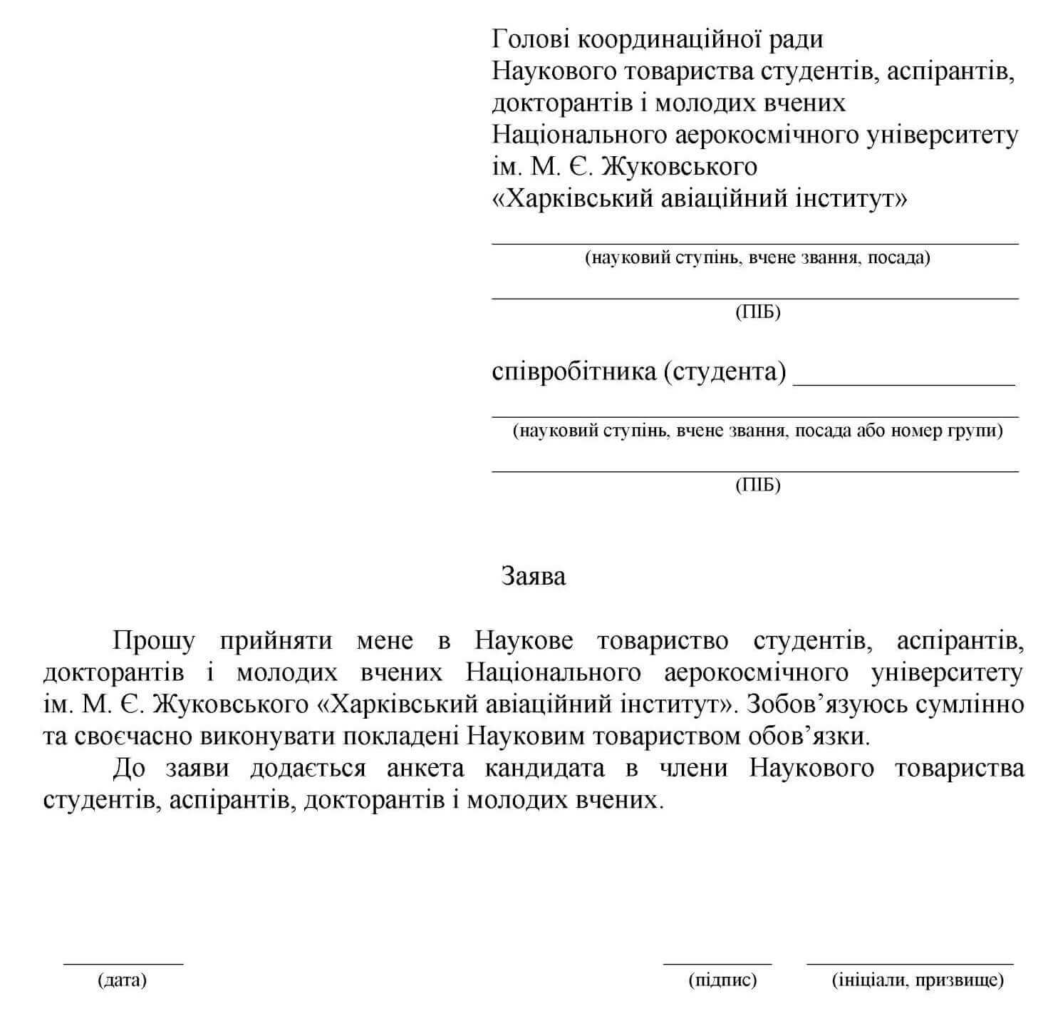 5.3 Рішення про прийняття до Наукового товариства ухвалюється Координаційною радою на підставі заяви та анкети, поданих особою, яка навчається або працює в Університеті, на ім’я Голови Наукового товариства, і набуває чинності з моменту його ухвалення. Зразки заяви та анкети на вступ до Наукового товариства надано у Додатках В і Г відповідно до цього Положення.
