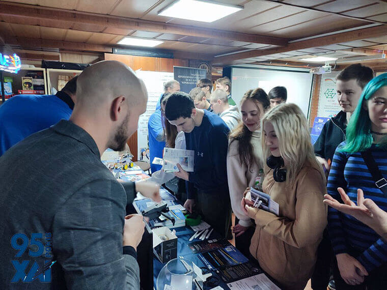 Сьогодні уніч мали можливість опанувати: 3D-cканер та власноруч створити 3D-модель. Познайомитися з аеродинамічними моделями авіаційної техніки, керованими машинками, голографічним проектором. Побачити макет двигуна Rolls-Royce Trent 900 у розрізі з обертанням вузлів вентилятора, компресори та турбіни, стенд для демонстрації законів управління, лабораторну модель з функціями реального супутника CubeSAT, двигун. Було представлено: композитні матеріали та каску, зразки пристроїв швидкісної обробки даних, стенд-демонстратор роботи нейромережі, квадрокоптер, пульсоксиметр, тепловізор, портативний електрокардіограф (комплекс «Фазаграф»), окуляри під FPV-дрон, презентацію по розробці програмного забезпечення для FPV-дрона на ноутбуці, лічильник банкнот, детектор валют, гру «Митниця» та лотерею-інфоквест «Подорож до майбутнього» від документознавців.