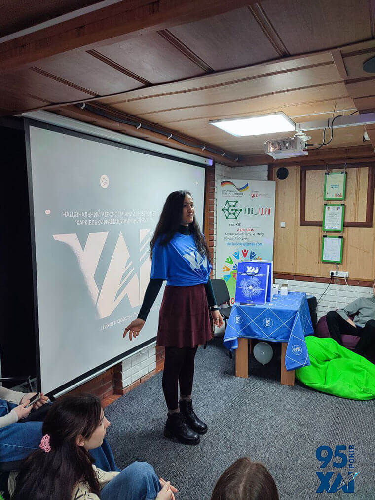 Зустріч з більше ніж 50 старшокласниками двох провідних ліцеїв міста - № 1 та № 2 - відбулася у Молодіжному центрі "HUB_ІДЕЙ", який під час війни перетворився на безпечне місце спілкування для дітей та молоді міста. Приємним моментом сьогоднішньої події стала зустріч з відвідувачкою минулорічного заходу з юними зміївцями, яка нещодавно успішно склала першу у своєму житті сесію в якості студентки ХАІ. Сподіваємося, що її приклад надихне й майбутніх випускників навчальних закладів Зміївської громади.