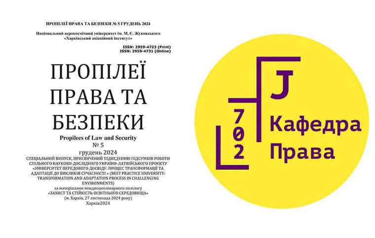 Вийшов черговий номер наукового журналу «Пропілеї права та безпеки», заснованого КАФЕДРОЮ ПРАВА (702) Гуманітарно-правового факультету Національного аерокосмічного університету ім. М. Є. Жуковського «Харківський авіаційний інститут».
