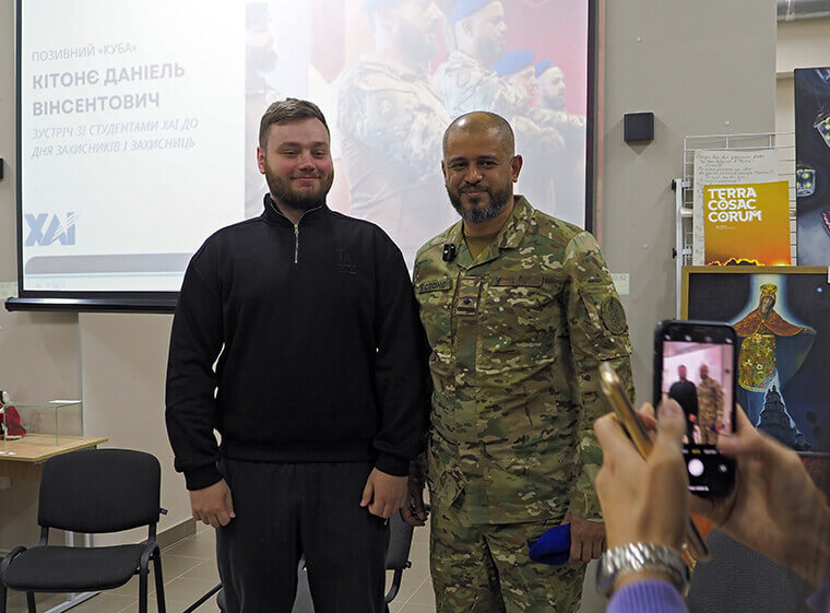 До Дня захисників і захисниць і Дня козацтва в ХАІ відбулася унікальна зустріч з історичною постаттю - українським військовослужбовцем, учасником російсько-української війни