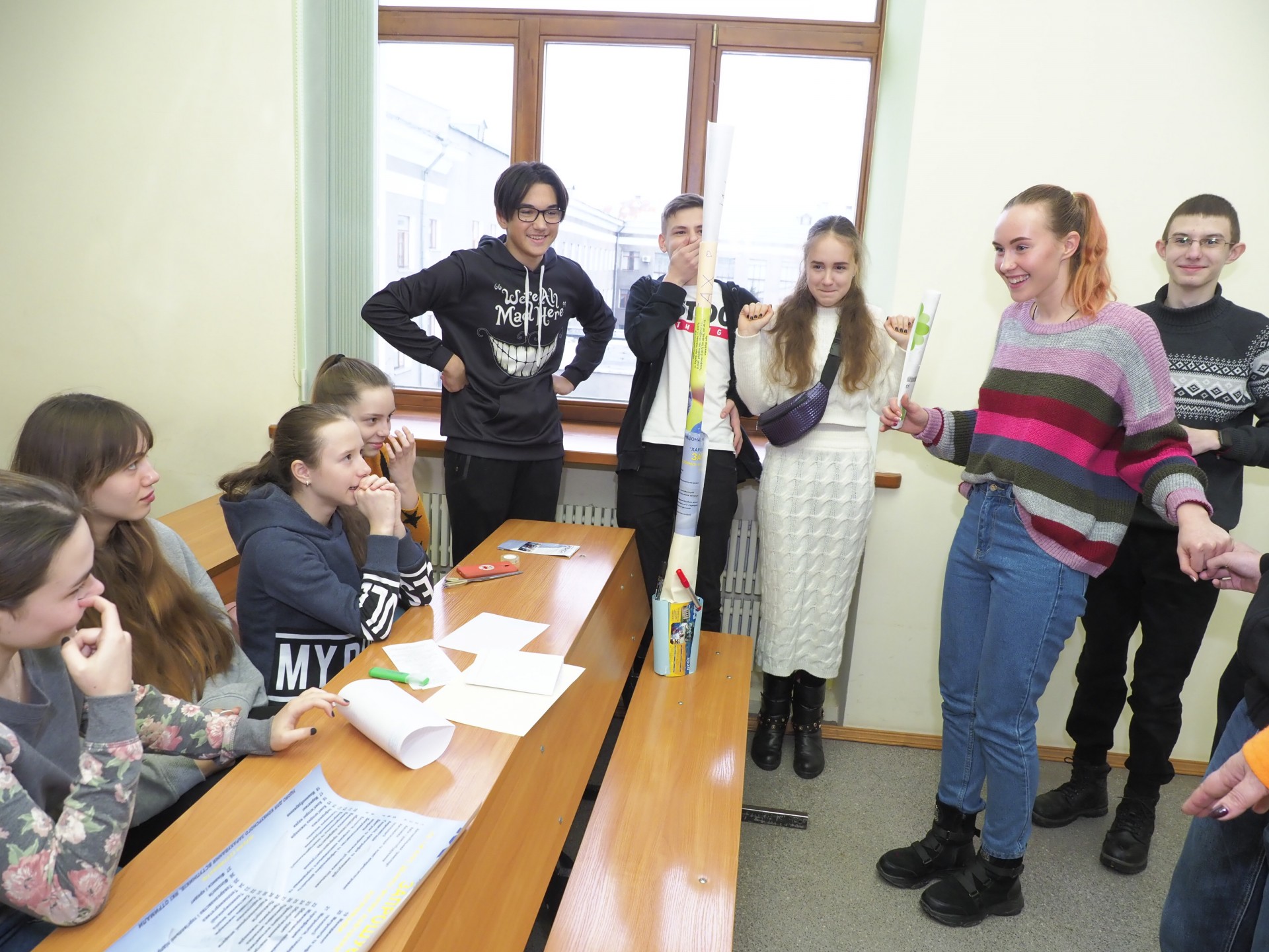 Присутніх поділили на дві команди й забезпечили папером. На виконання завдання відводилося 7 хвилин. Визначити переможця не вдалося: перша команда збудувала стійку вежу, але конструкція другої команди вразила всіх своєю «екзотичною» геометрією.