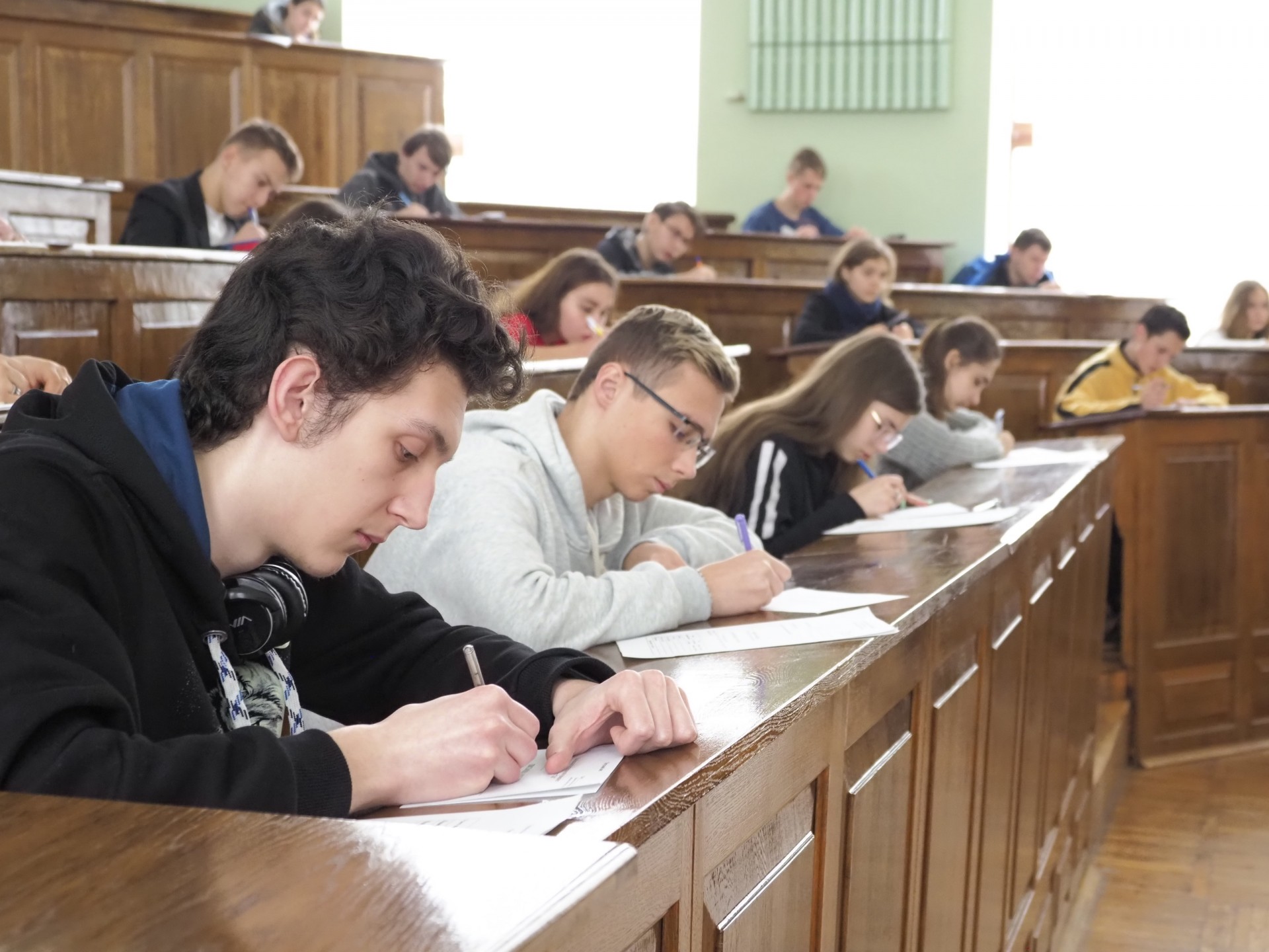 Подорож пам’ятками ХАІ закінчилася – охочі прийшли до аудиторії 307 головного корпусу, щоб узяти участь в олімпіадах з української мови та математики. Вони були особливо цінними, оскільки за успішне рішення завдань абітурієнтам нараховували додаткові бали для вступу на перший курс.