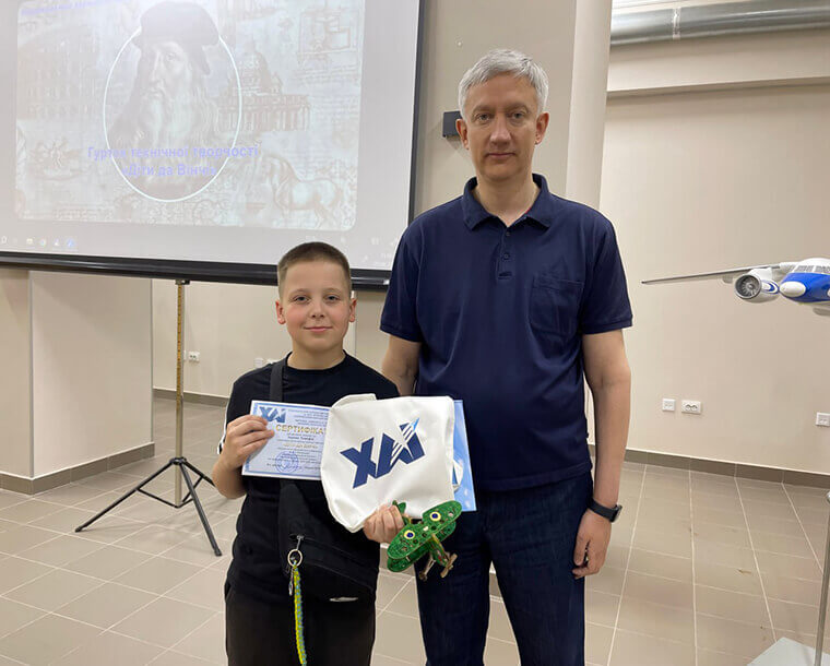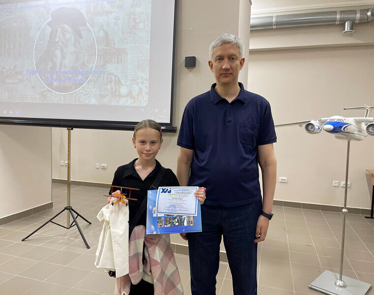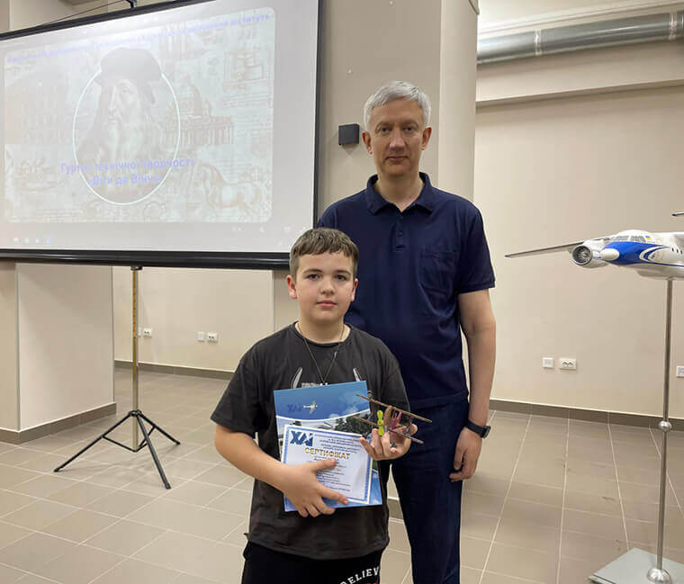 5 червня у безпечному просторі ХАІ відбулося урочисте вручення сертифікатів школярам – учасникам програми «Діти Да Вінчі», які впродовж року відвідували авіамодельний гурток.