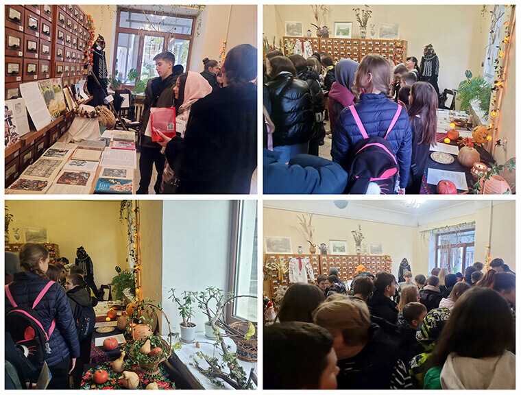 Цими днями тут — справжній аншлаг: студенти університету та старшокласники навколишніх ліцеїв занурилися у дивовижну виставку з гарбузами, книжками, легендами та міфами.