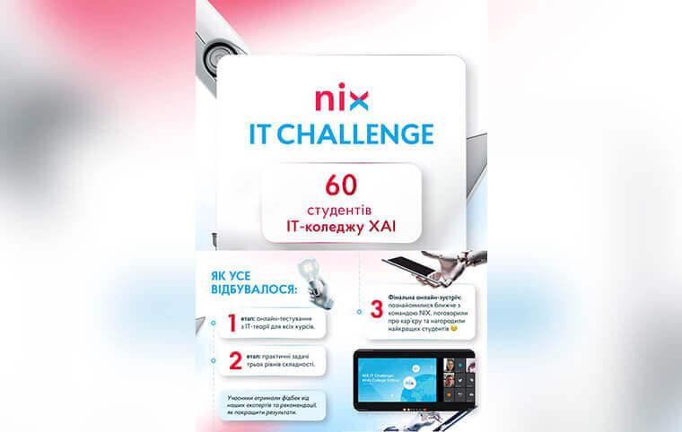 Нещодавно Відокремлений структурний підрозділ Харківський фаховий коледж інформаційних технологій Національного аерокосмічного університету «ХАІ» у співпраці з IT-компанією NIX провели масштабний ІТ-челендж для студентів.