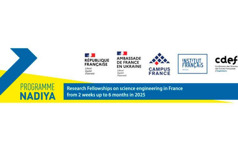Посольство Франції в Україні Ambassade de France en Ukraine у партнерстві з Конференцією директорів французьких інженерних шкіл (CDEFI) та її мережею оголошує конкурс на отримання стипендій з наукової мобільності високого рівня (SSHN) для українських дослідників в галузі інженерних наук в рамках програми NADIYA.