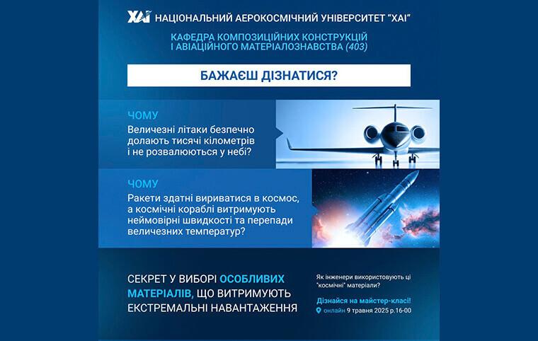 Мрієш створювати літаки та космічні ракети? Цікавишся сучасною авіаційною й ракетно-космічною технікою? Хочеш дізнатися, як обирають матеріали, здатні витримувати екстремальні навантаження у небі та космосі?