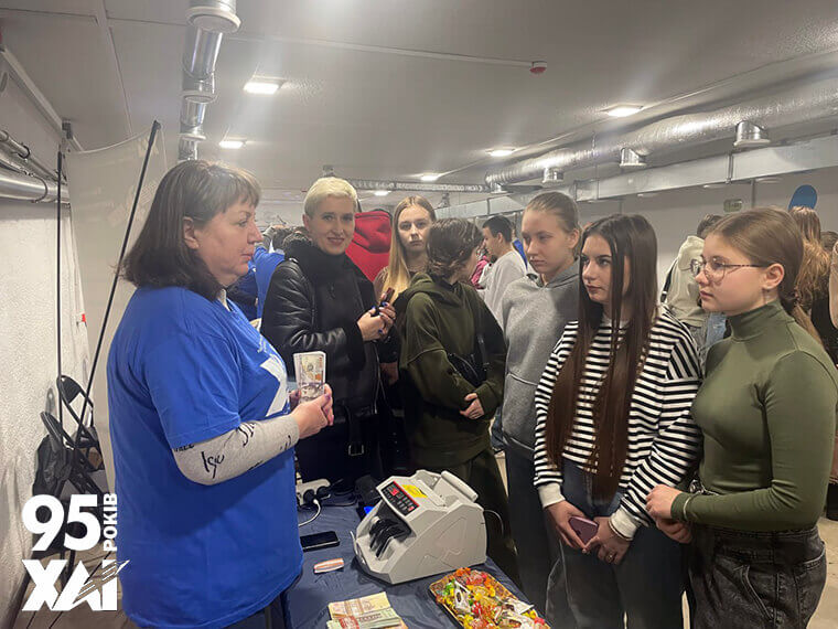 7 факультетів ХАІ представили для знайомства: 3D сканер з можливість створення 3D-селфі, модель для визначення навантажень на крило літака, модельний турбореактивний двигун, макет двигуна Rolls-Royce Trent 900 у розрізі з обертанням вузлів вентилятора, компресора та турбіни, лопатки, голографічний проектор, керовані машинки, авіасимулятор, стенд керування рульовими поверхнями ЛА типу «БЕЗХВОСТКА».