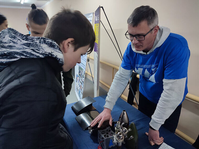 - аерокосмічні та інженерні розробки: школярі дослідили модель двигуна Стірлінга, макет Rolls-Royce Trent 900 у розрізі, газотурбінний модельний двигун, а також лабораторну модель супутника CubeSAT. Вони дізналися, як працює станція відстежування сонця, а також спостерігали за прийомом даних із погодного супутника.