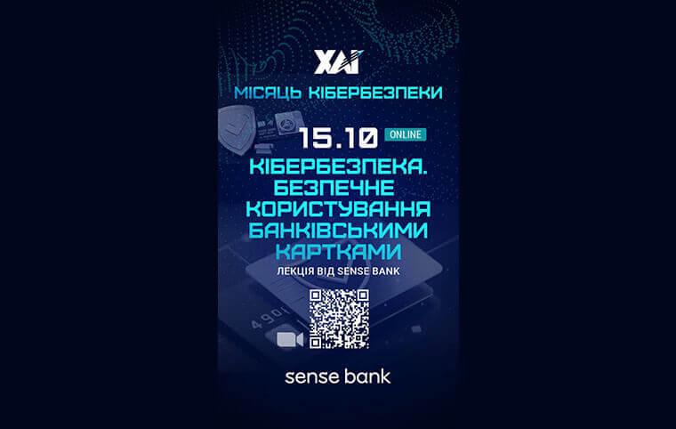 15 жовтня запрошуємо тебе на онлайн-лекцію від Sense Bank: «Кібербезпека. Безпечне користування банківськими картками»