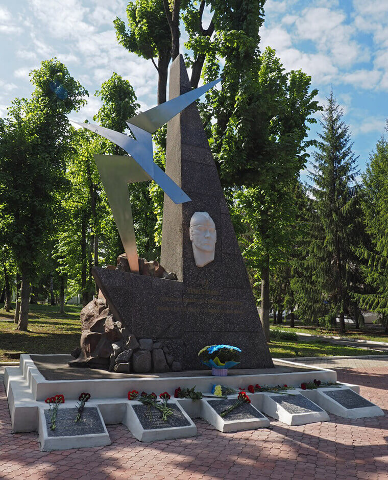 Меморіал студентам, викладачам та співробітникам ХАІ, чиє життя забрала війна… Тут — прізвища тих, хто загинув у бою, помер від ран, не пережив окупацію, був страчений гітлерівцями.