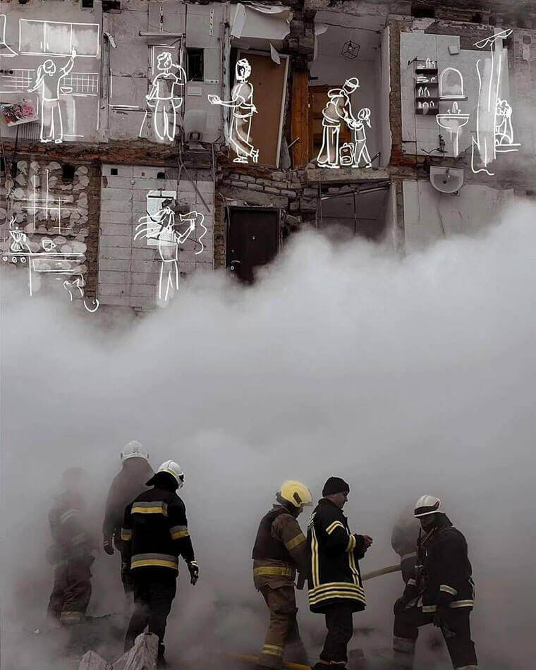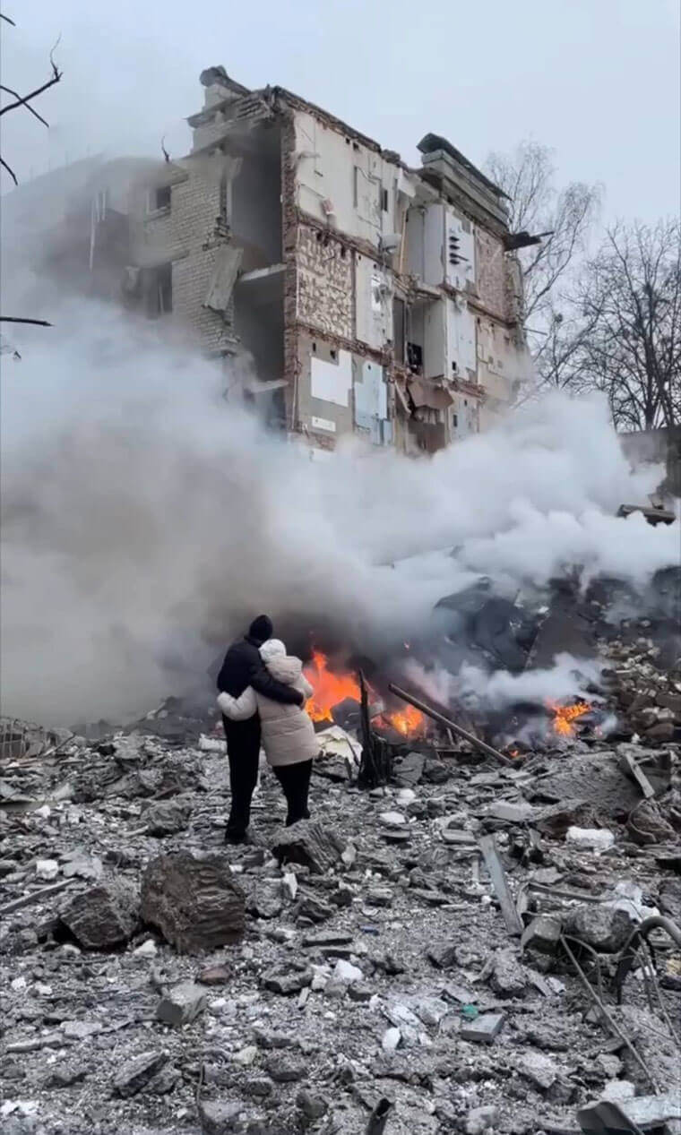 Через 8 годин страшний потужний вибух з довгим розкатом. На місті під’їзду, біля якого вчора гралися діти - гора обгорілих битих цеглин, з якої, мов останній подих, у морозне небо піднімалася пара…