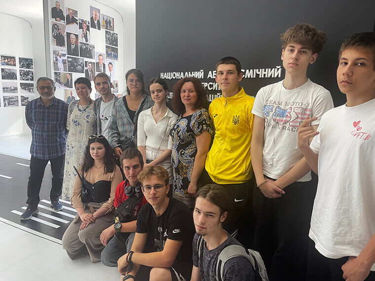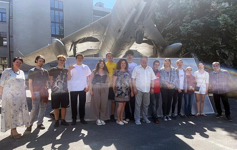 На фото — студенти Кафедри нарисної геометрії та комп'ютерного моделювання (406) - з викладачами, з деканом, біля легендарних літаків, у виставковій залі університету з відчуттям причетності до великої родини ХАІ.