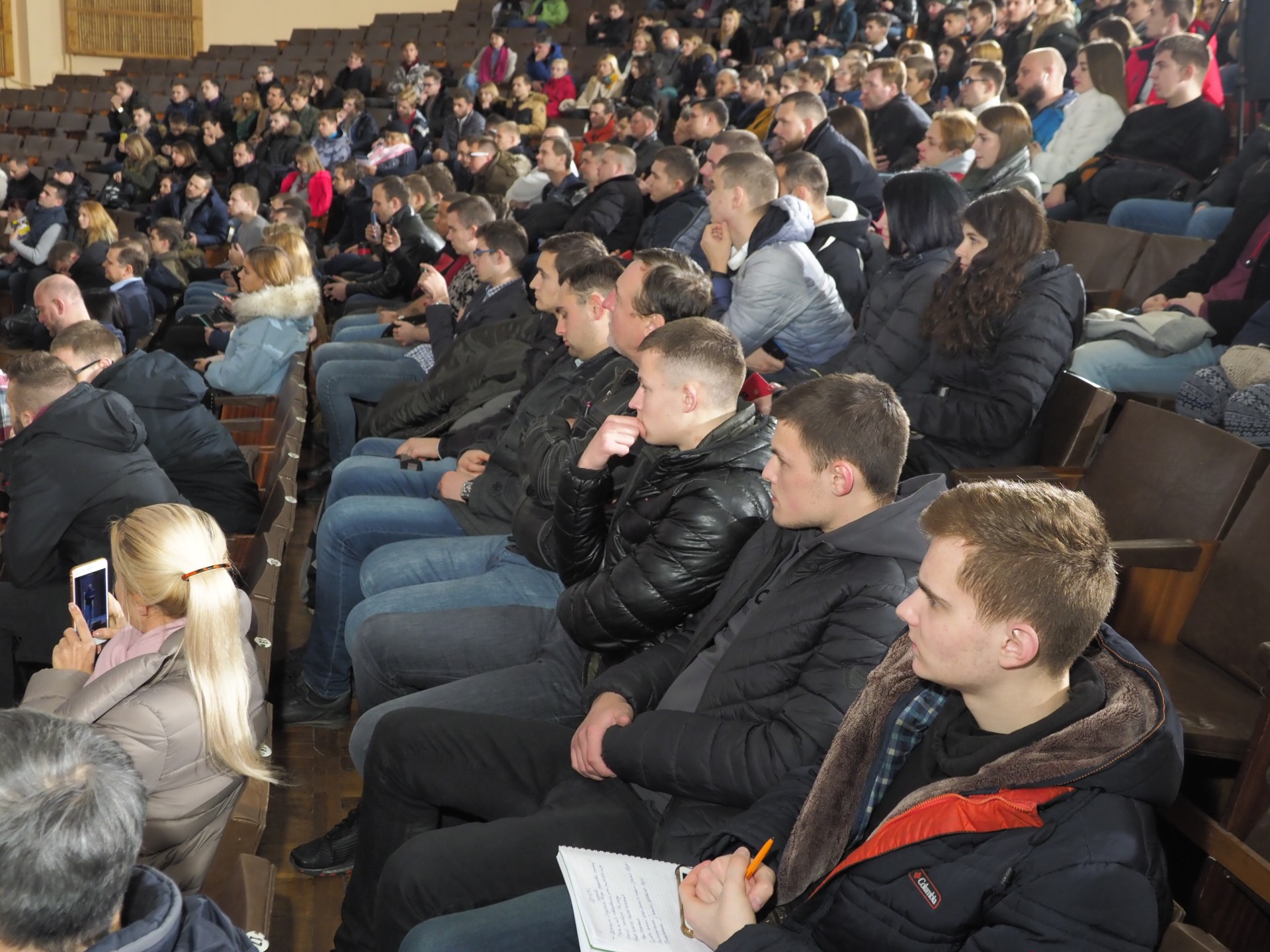 Аудиторія жваво відреагувала на появу доларового мільйонера бурхливими оплесками. Гість проводив відверту розмову про бізнес у форматі «питання-відповідь».