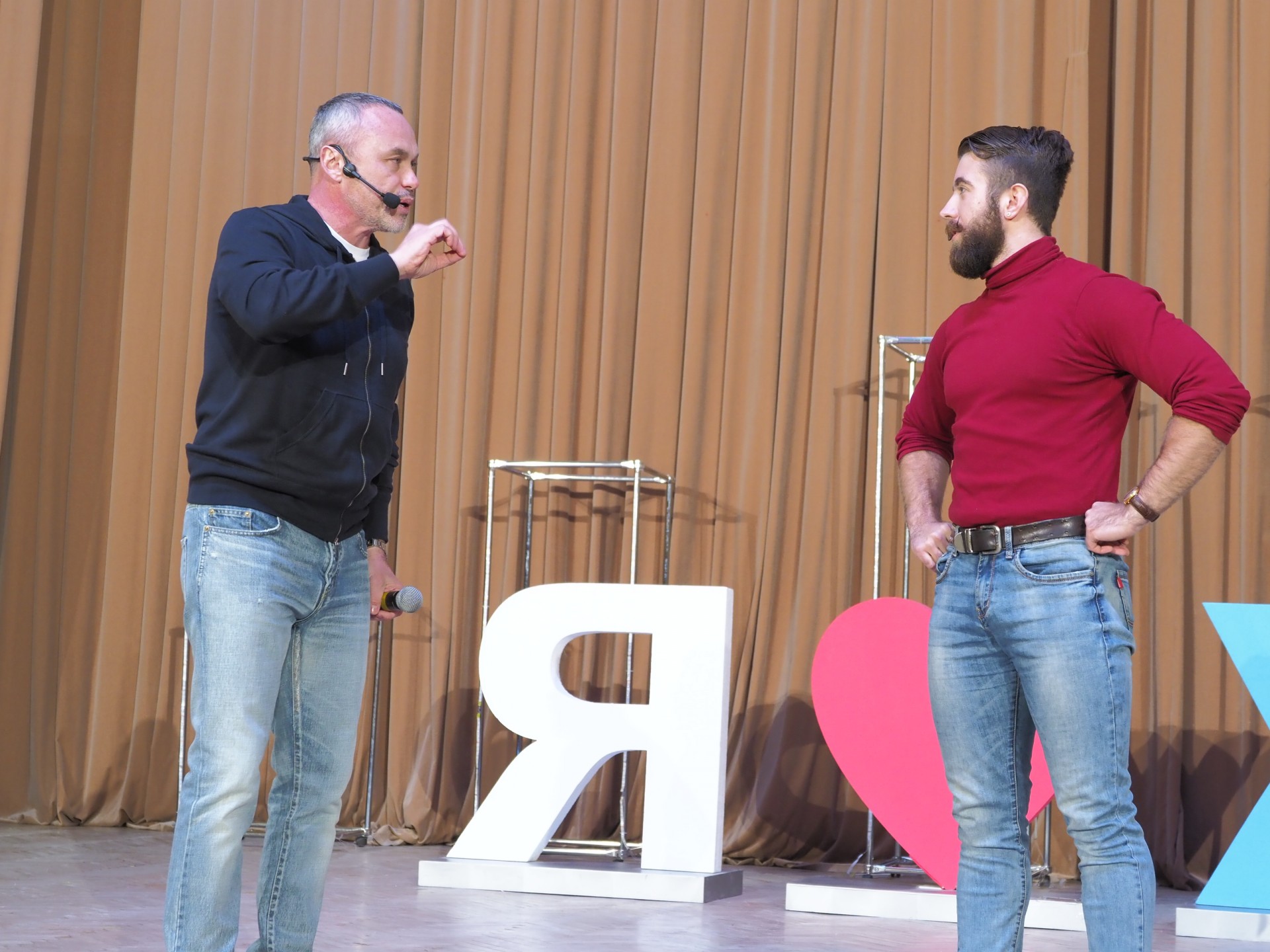«Усім привіт! Не дивлячись на велику кількість виступів, яка була у моєму житті, я досі не припинив хвилюватися. У мене не має до цього імунітету. До презентації я також не готовий, адже вважаю, що зараз тренінгів про великий успіх вкрай багато. Уважаю, що на усіх подібних заходах має бути чесний, відкритий діалог, який засновується на тих питаннях, що цікавлять вас, а не ту людину, котра знаходиться на сцені. Тому спілкуймося: у нас тут є кілька вільних мікрофонів», – розпочав свій виступ бізнесмен.