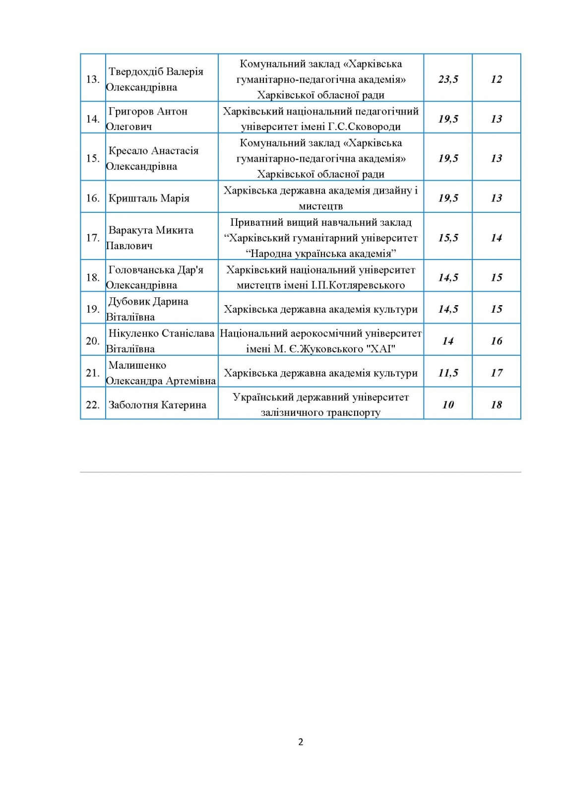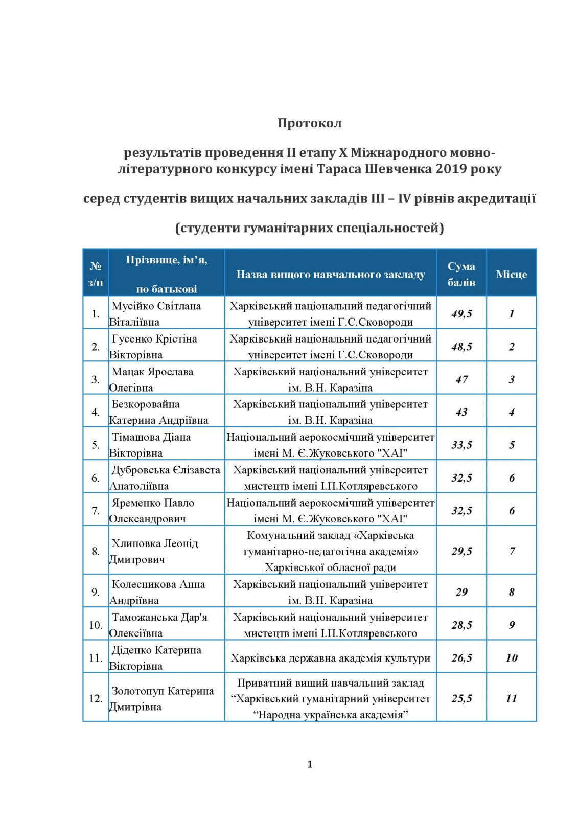 У секторі «студенти гуманітарних спеціальностей» «золото» здобула Світлана Мусійко (49,5 бала; Харківський національний педагогічний університет імені Г. С. Сковороди). Щодо учасників з ХАІ: 5 місце – Діана Тімашова (33,5 бала), 6 місце – Павло Яременко (32,5 бала), 16 місце – Станіслава Нікуленко (14 балів).