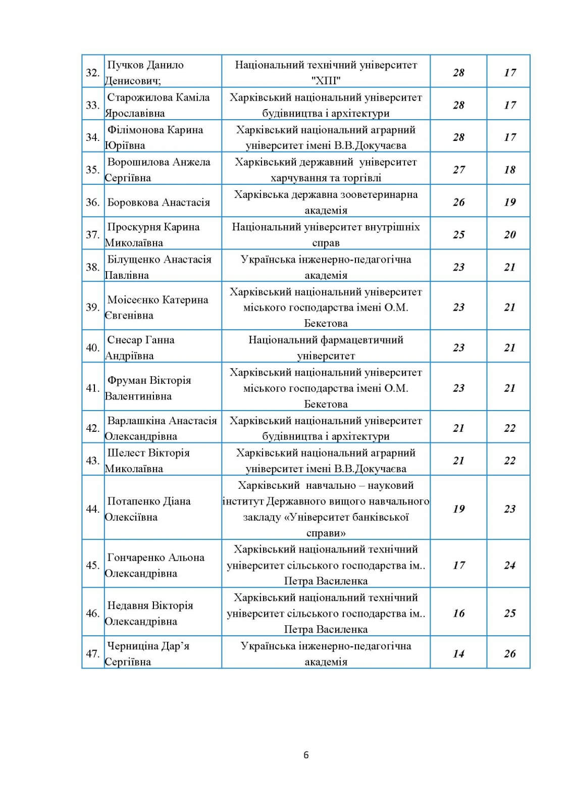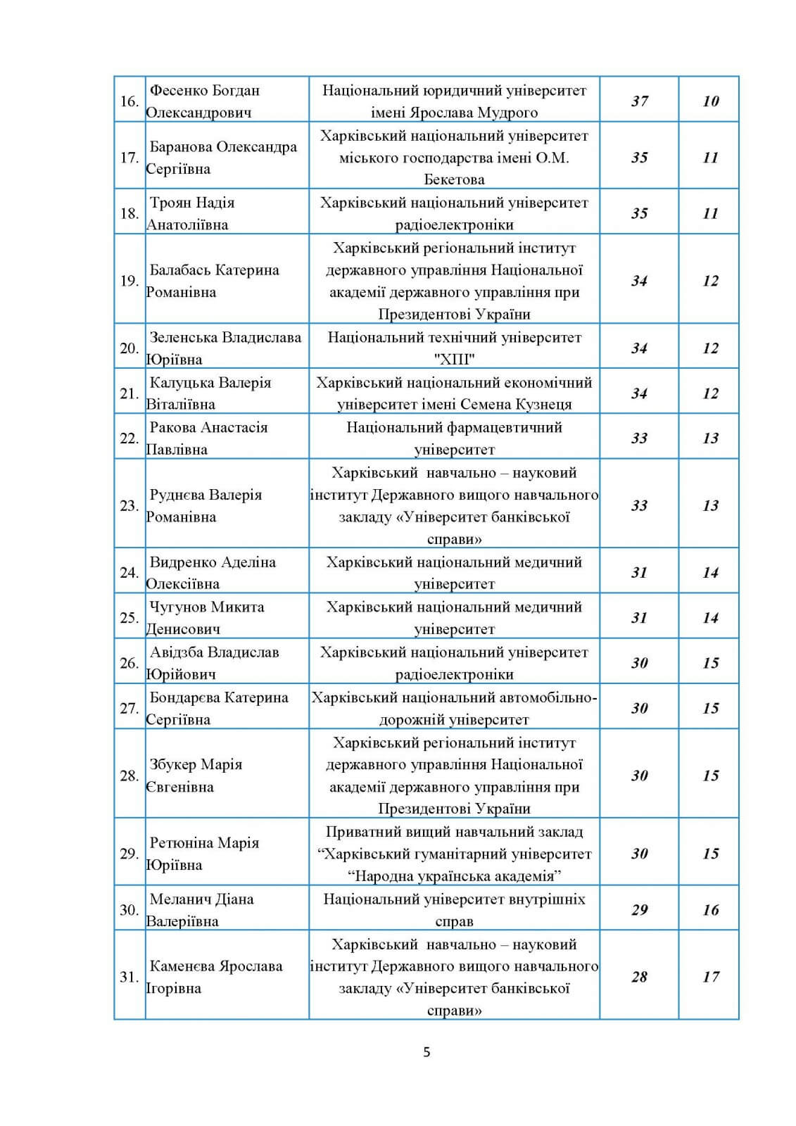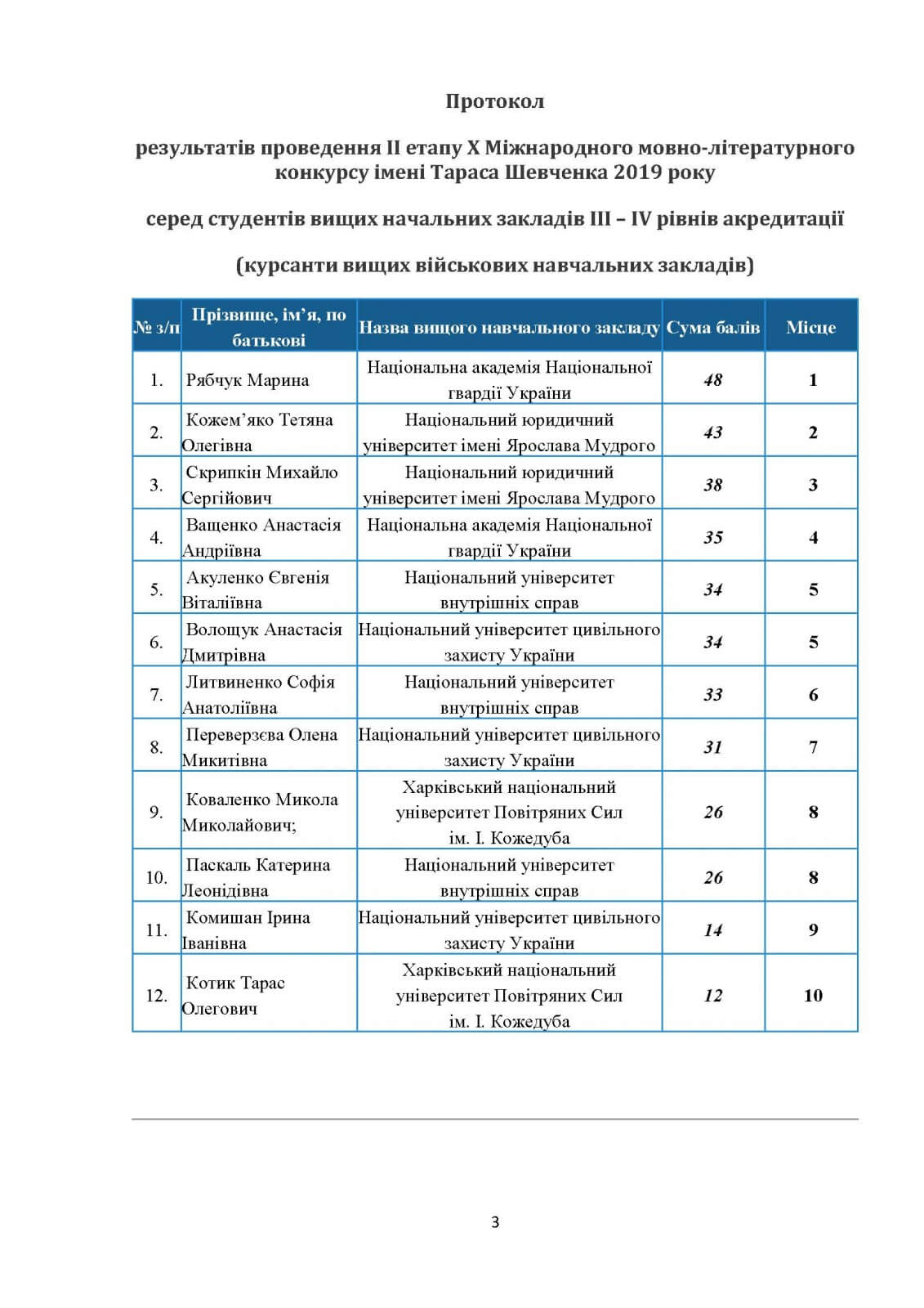 У секторі «курсанти вищих військових навчальних закладів» на першому місці розташувалася студентка Національної академії Національної гвардії України (48 балів), а переможцем сектору «студенти негуманітарних спеціальностей» було визнано Анастасію Вінник з Харківської державної академії фізичної культури (47 балів).