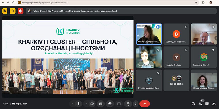 З вітальним словом гостей зустріли завідувач кафедри Вячеслав ХАРЧЕНКО та координаторка освітніх програм Kharkiv ІТ Cluster Уляна ШУМЕЙ. Програма заходу була насиченою: випускники та аспіранти кафедри, які зараз працюють у провідних ІТ-компаніях (Руслан ДЕМУРА, Єгор ОЛЕЙНИКОВ, Олесь ОЛІЙНИК, Кирило ПОЛІЩУК, Артем СЕРЕДЮК), провели п’ять міні-майстер-лекцій з сучасних інформаційних технологій та ІТ-безпеки.