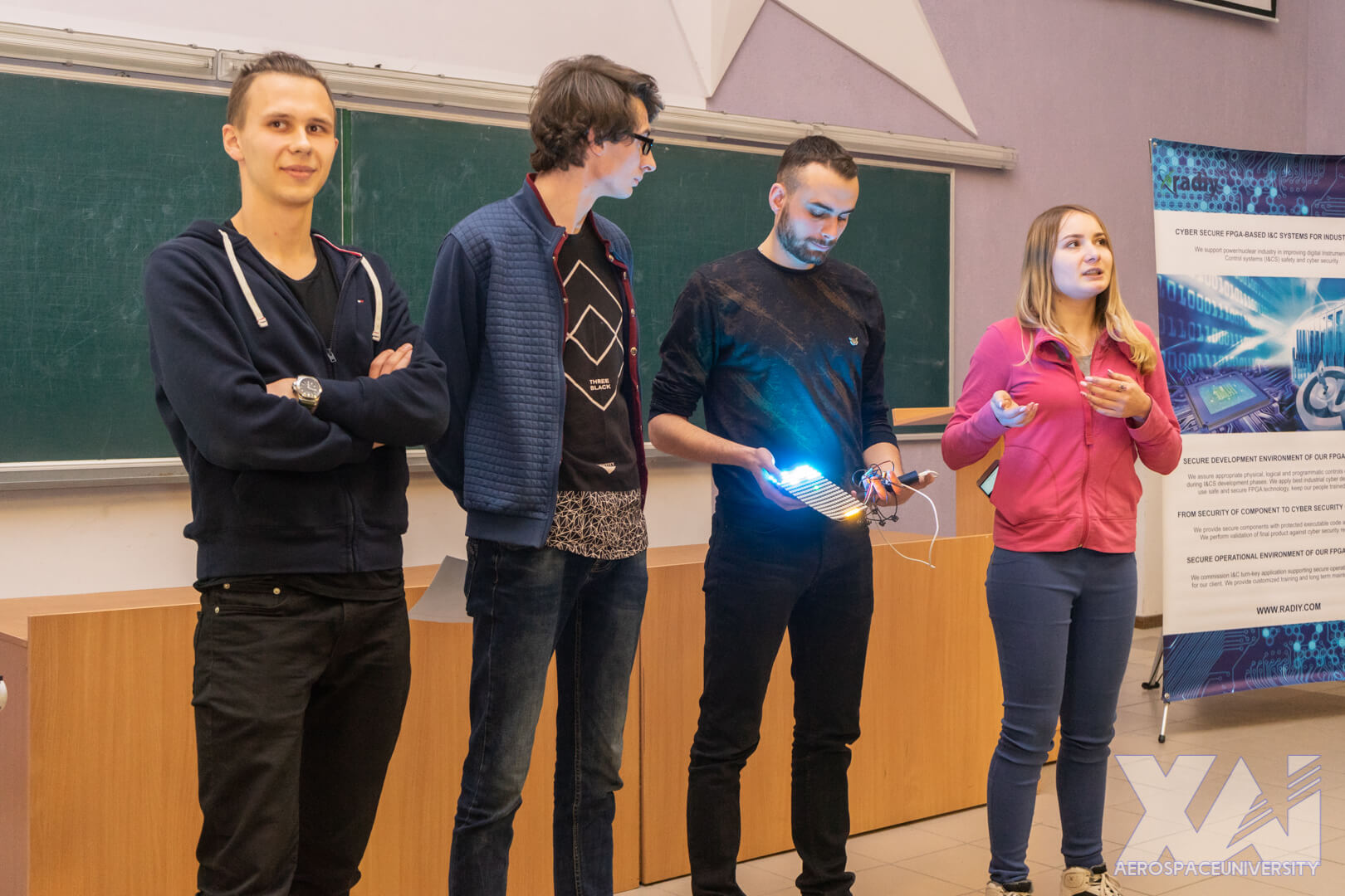 У ХАІ і закінчився дводенний хакатон Embedded Systems Innovative Hack 2019, який проходив з 22-23.03.2019. На заході були присутні 45 учасників, з них 12 команд. Хакатон проходив за підтримки: Aliot, Radiy, RadICS (на базі ХАІ). Перший день складався з реєстрації учасників, лекцій від спонсорів, а також лекцій з основ FPGA. Для роботи учасникам видали нові плати Arduino і FPGA. Після цього, протягом доби, команди розробляли різні проекти. Спрямованість Хакатона включала такі типи завдань: FPGA / MC AS Services, FPGA / MC Security і FPGA / MC gaming (embedded gaming). Перше місце дісталося хлопцям з проектом смарт коляски. Друге місце отримали учасники, які розробили проект реклами за допомогою світлодіодної стрічки. Третє місце розділили два проекти - смарт полив і проект гаманця для біткоіни.