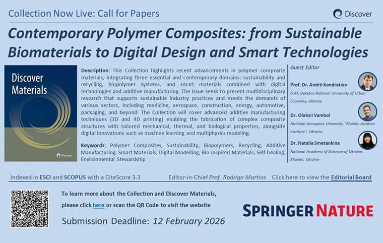 Національний аерокосмічний університет «ХАІ» з гордістю повідомляє, що Олексій ВАМБОЛЬ, кандидат технічних наук, доцент кафедри композиційних конструкцій і авіаційного матеріалознавства (403), приєднався до редакційної команди авторитетного наукового видавництва Springer Nature як запрошений редактор спеціального випуску журналу Discover Materials.