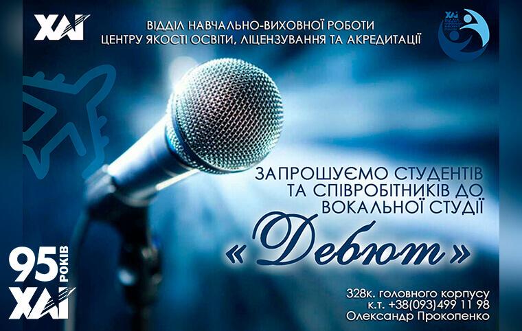 Відділ навчально-виховної роботи Центру якості освіти, ліцензування та акредитації урочисто запрошує студентів і співробітників приєднатися до вокальної студії «Дебют»! Долучайтеся до нашої творчої родини, адже разом ми творимо легенду!