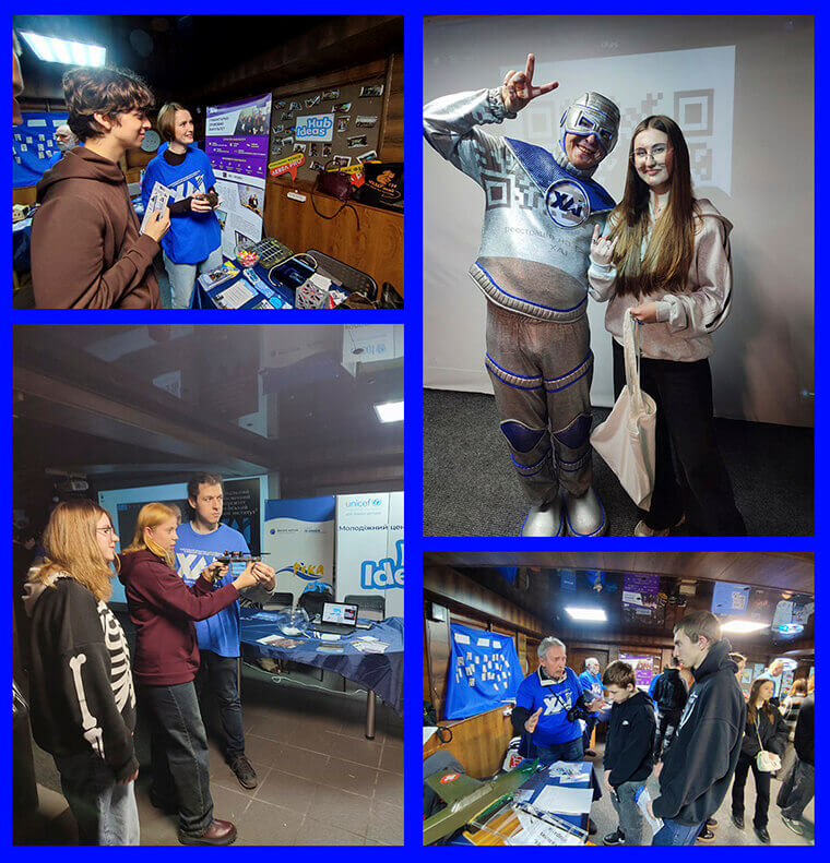 Хлопці й дівчата знайомилися з макетом літака, моделями газотурбінних двигунів і деталями лопаткових машин, керували механічними моделями, досліджували роботу голографічного проєктора, розумного будинку на колісах, станції відстежування сонця та лабораторної моделі супутника CubeSAT.