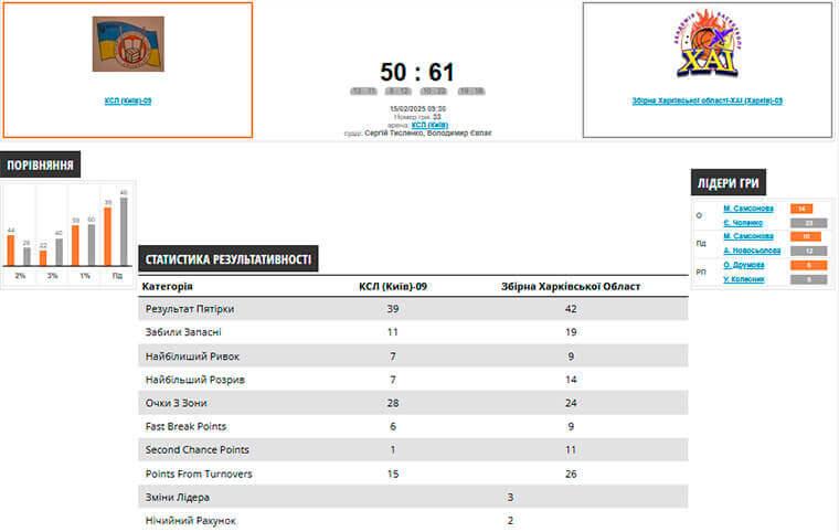 Єлизавета Чопенко – справжня зірка поєдинку! Вона продемонструвала майстерність найвищого рівня, оформивши дабл-дабл: 23 очки, 11 підбирань, 4 результативні передачі, 7 перехоплень, РЕ-35!