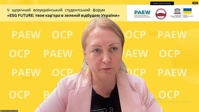 Саме тому співробітники кафедри разом зі здобувачами освіти долучилися до щорічного Всеукраїнського студентського форуму «ESG FUTURE: твоя кар’єра у зеленій відбудові України», організованого за підтримки Офісу сталих рішень. Актуальність цієї тематики невпинно зростає в контексті євроінтеграційних процесів і потреби адаптації українських підприємств до сучасних стандартів сталого розвитку.