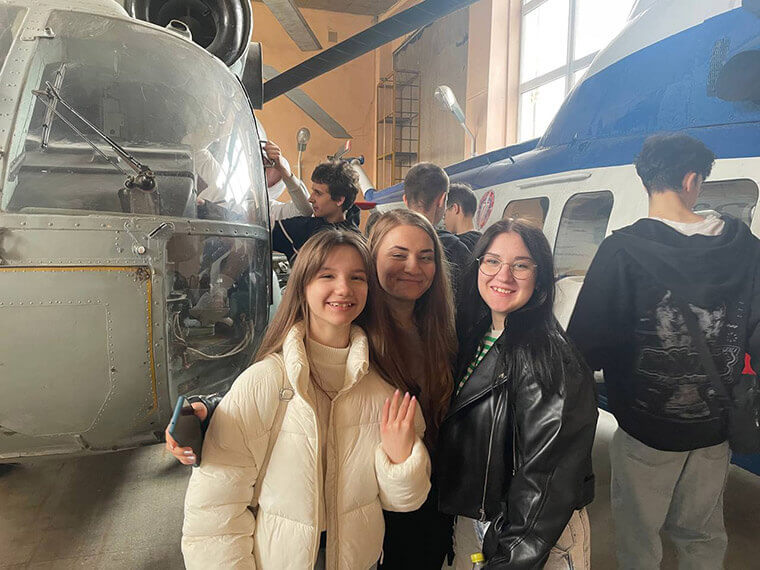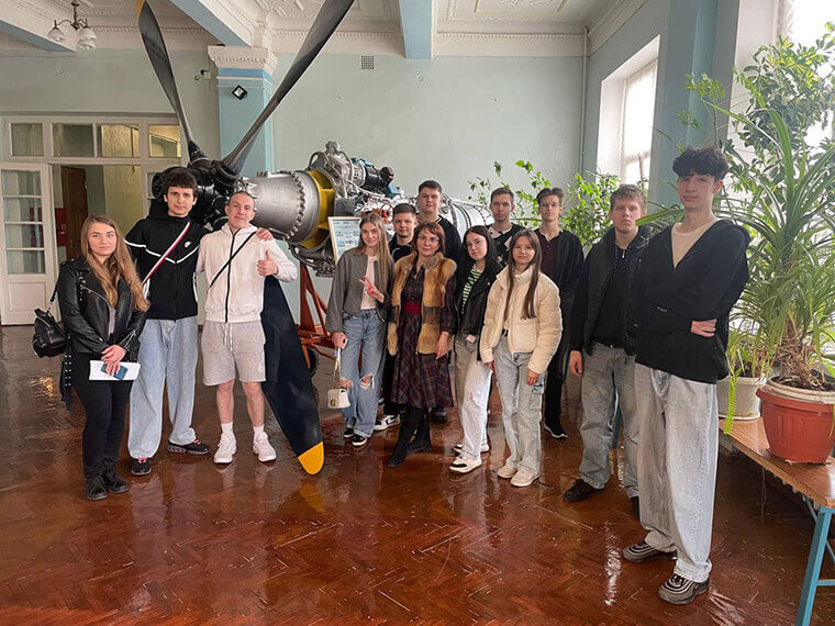 Під час екскурсії, яку провела завідувачка кафедри технології виробництва літальних апаратів (кафедра 104) Катерина Майорова, школярі ознайомилися з навчальними корпусами та аудиторіями, побачили зразки авіаційної техніки й дізналися більше про напрямки підготовки в університеті.