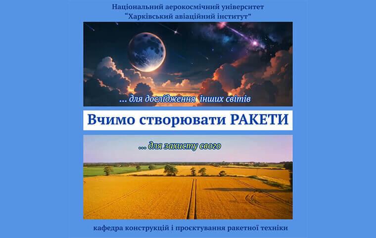 Національний аерокосмічний університет “Харківський авіаційний інститут” кафедра конструкцій і проєктування ракетної техніки пропонують навчання за освітньою програмою: «Ракетно-космічна техніка».