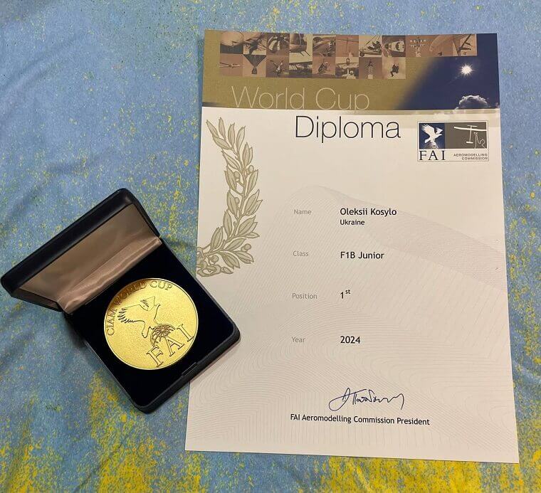 Олексій КОСИЛО, студент факультету Літакобудування, став переможцем FAI Free Flight World Cup 2024 серед юніорів у класі F1B!