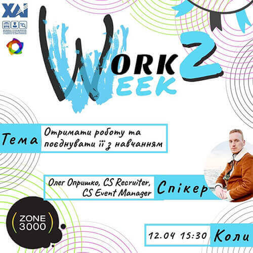 12/04/2021 о 15.30 - ZONE3000, «Отримати роботу та поєднати її з навчанням» від Олег Опришко,CS Recruiter, CS Event Manager