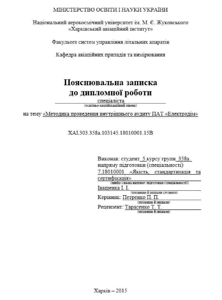 - відомості про виконавця, керівника роботи; пояснювальна записка до дипломного проекту (роботи) додатково містить відомості щодо рецензента.