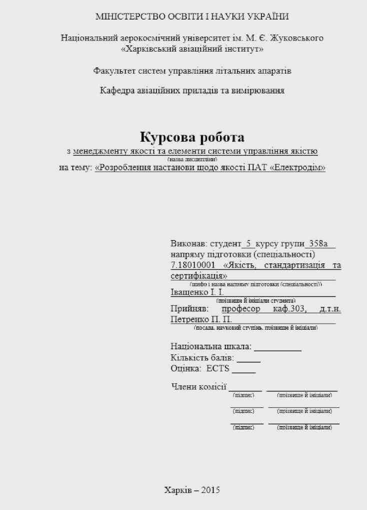 1.5 Титульний аркуш курсового проекту (роботи) додатково містить відомості щодо членів комісії з місцем для особистого підпису, а саме: