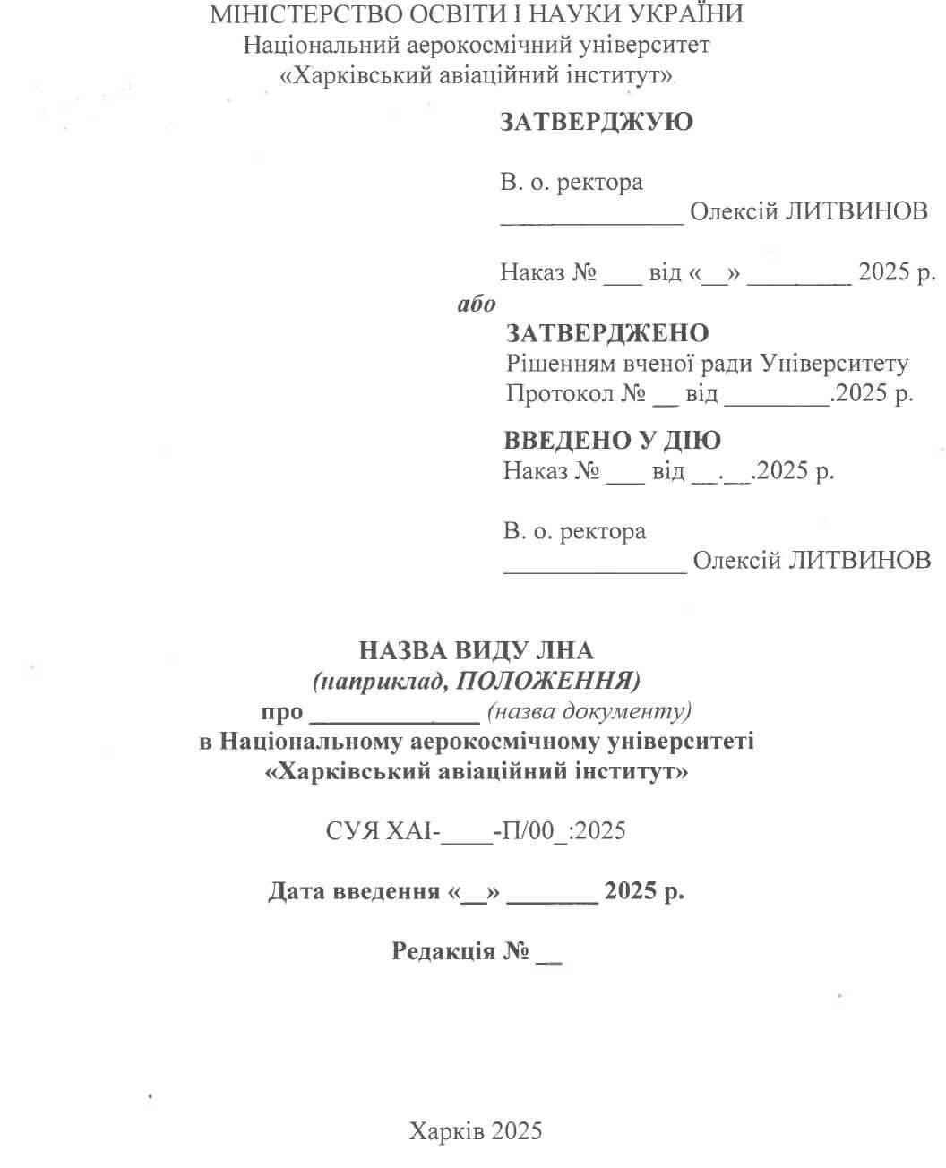 2.4. Проект ЛНА розробляється відповідальним структурним підрозділом, посадовою особою або робочою групою з урахуванням вимог чинного законодавства, внутрішніх потреб Університету, з дотриманням принципів прозорості, законності і несуперечливості зі статутом, щоб забезпечити відповідність проекту ЛНА вищим за ієрархією документам. Проект положення про структурний підрозділ розробляється з урахуванням вимог Інструкції про порядок підготовки положень про структурні підрозділи Університету (СУЯ ХАІ-ЮВ-І/001:2025).